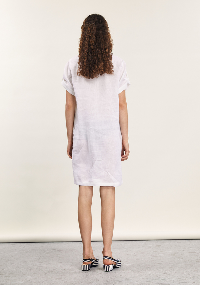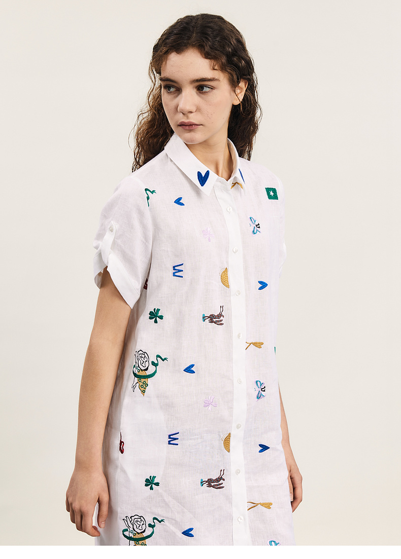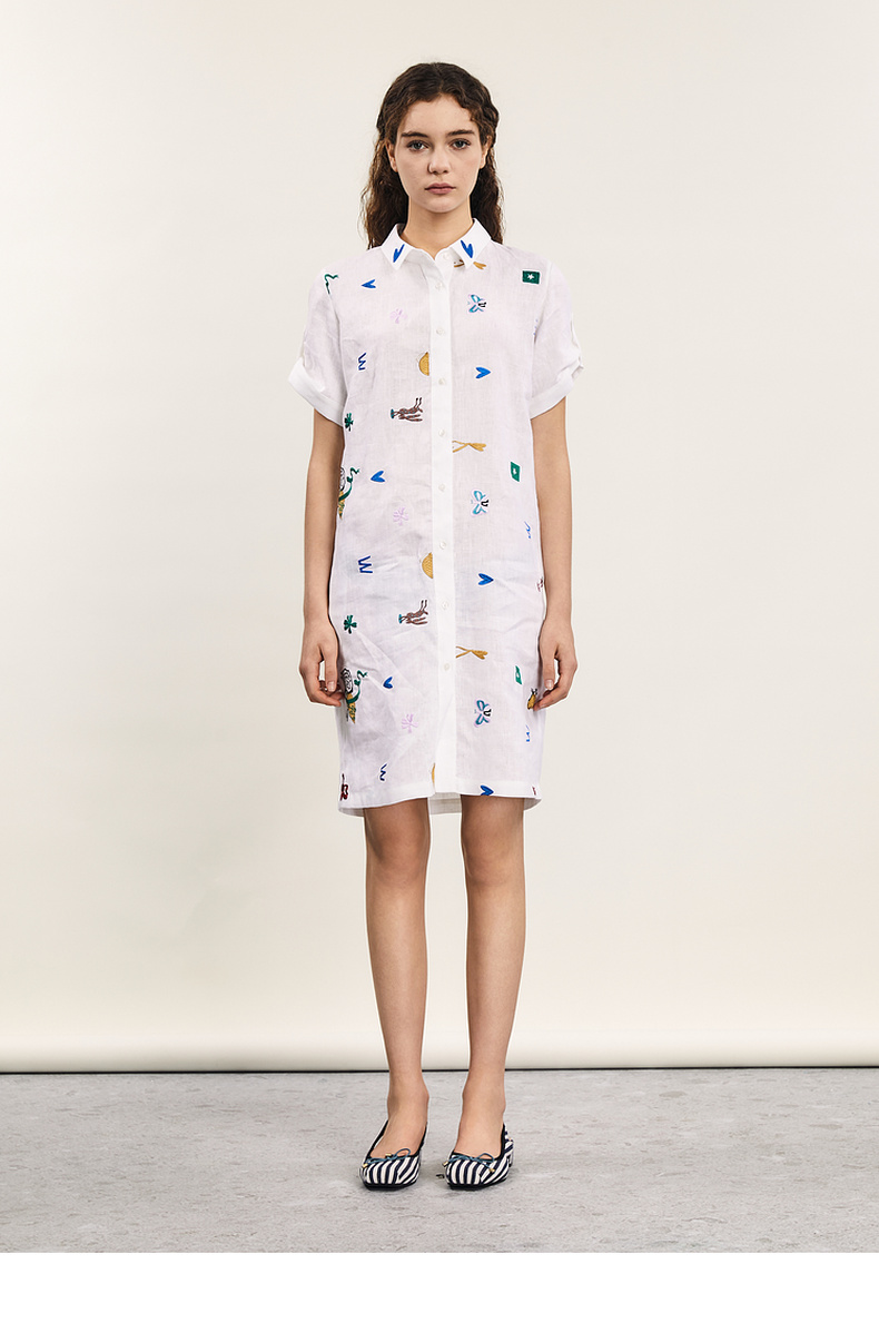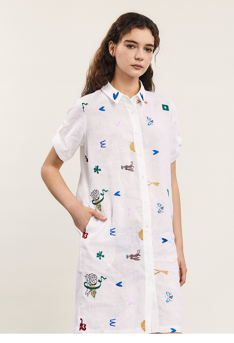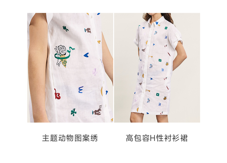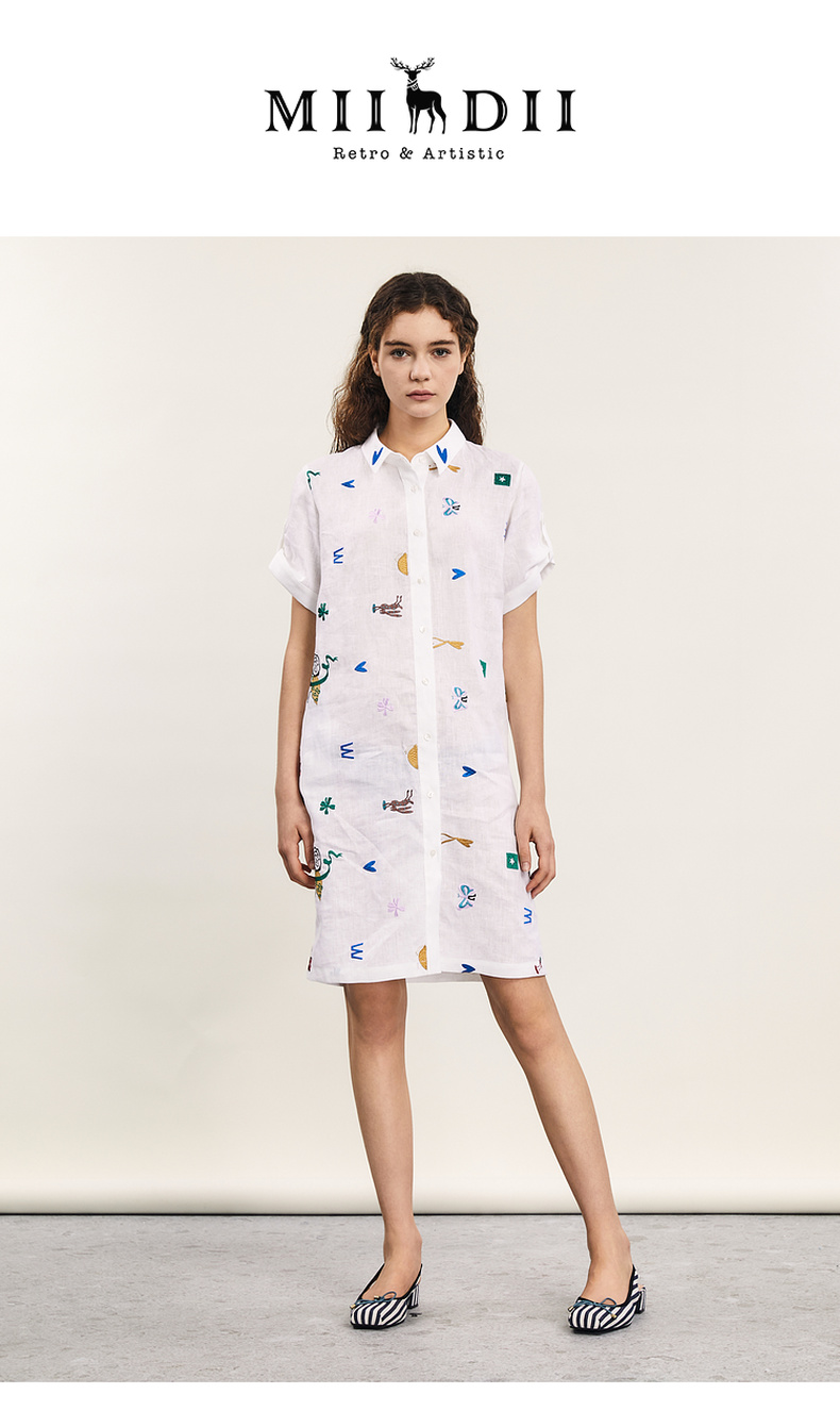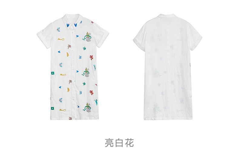 谜底绣花衬衫式连衣裙短袖2024年夏款复古文艺风直筒裙242ML0695