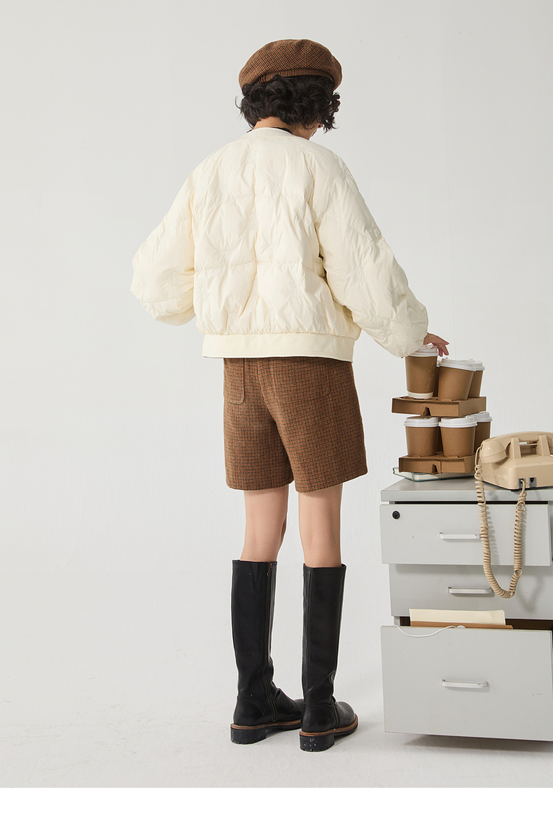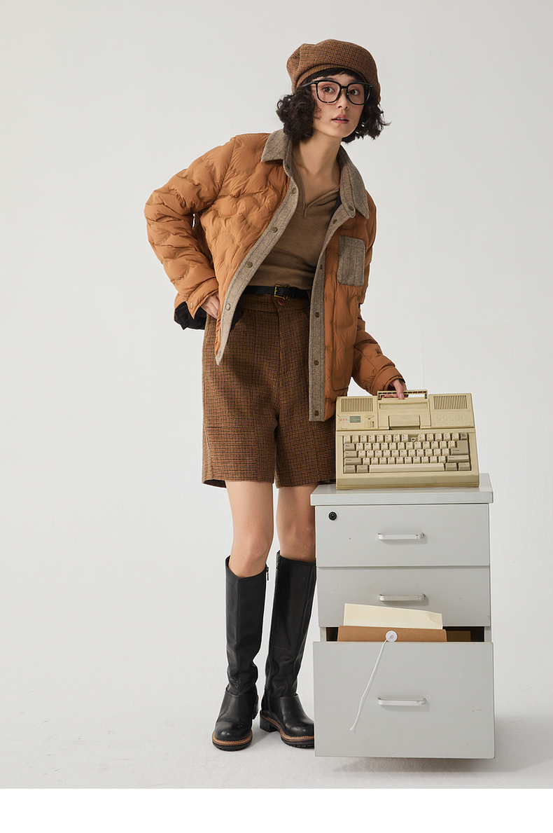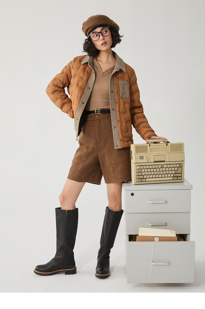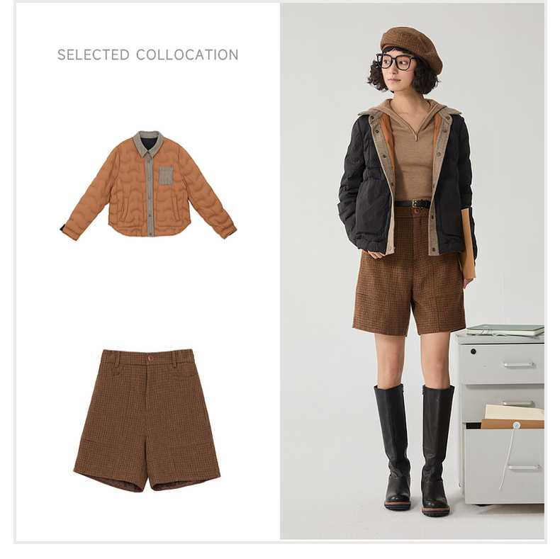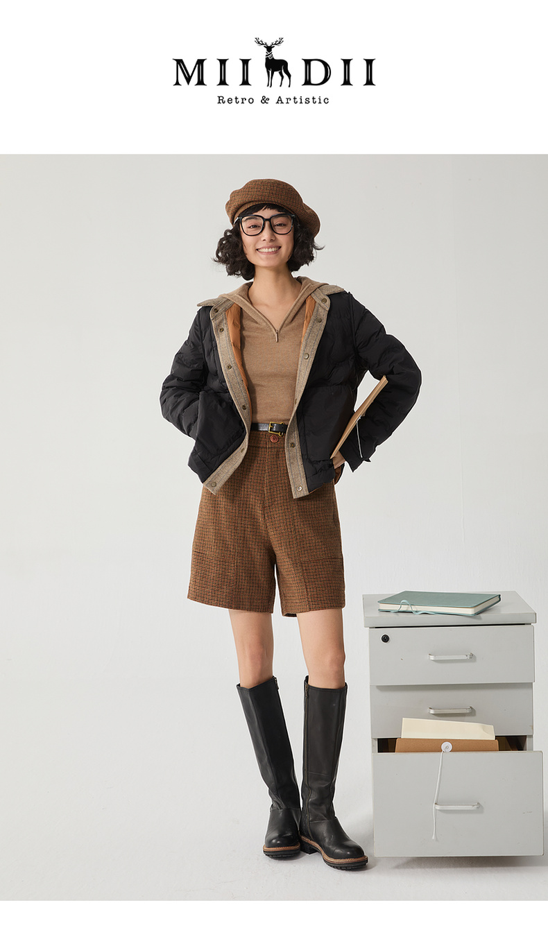 谜底格纹短裤女2024冬季新品复古风高腰百搭直筒裤靴裤244MK1564