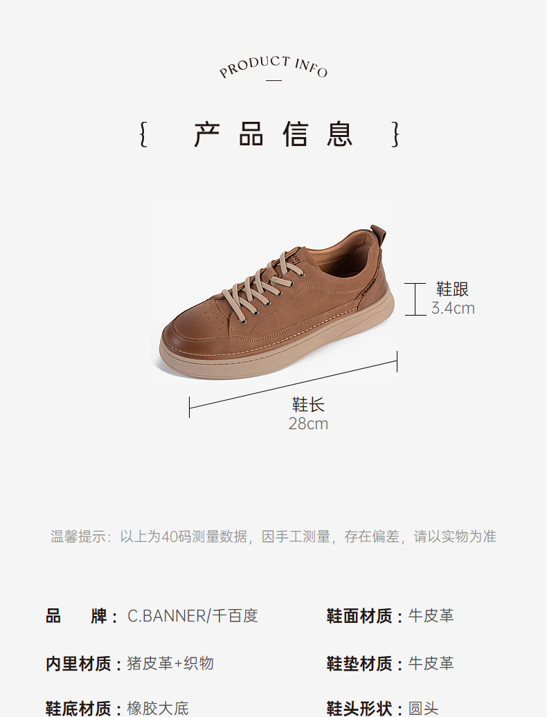 千百度男鞋厚底板鞋秋季复古增高休闲鞋男士真皮运动鞋A23405207