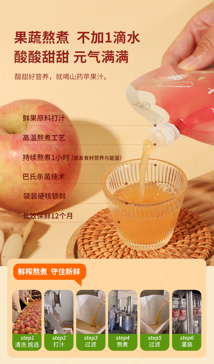 【山药苹果汁】健康零食|苹果加山药,脾肺都说好,微微甜酸