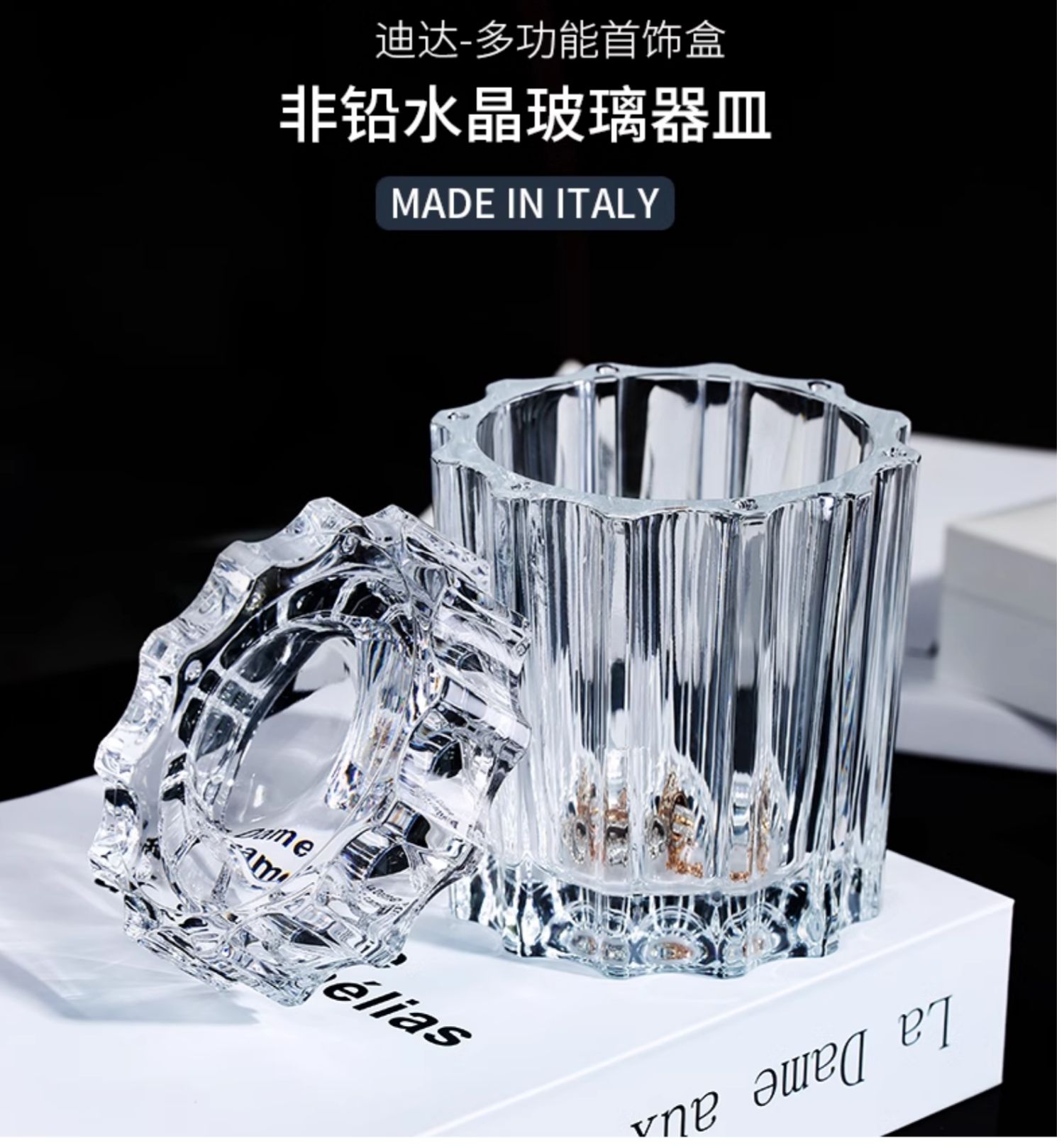 【特惠6折】意大利RCR水晶玻璃糖果缸罐储物罐子糖缸装饰摆件送礼物首饰盒RCR迪达8.5CM12.5CM糖盅多功能收纳盒