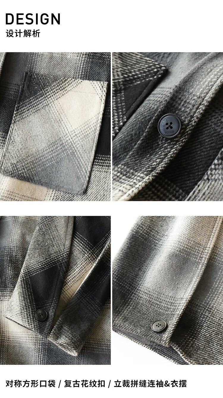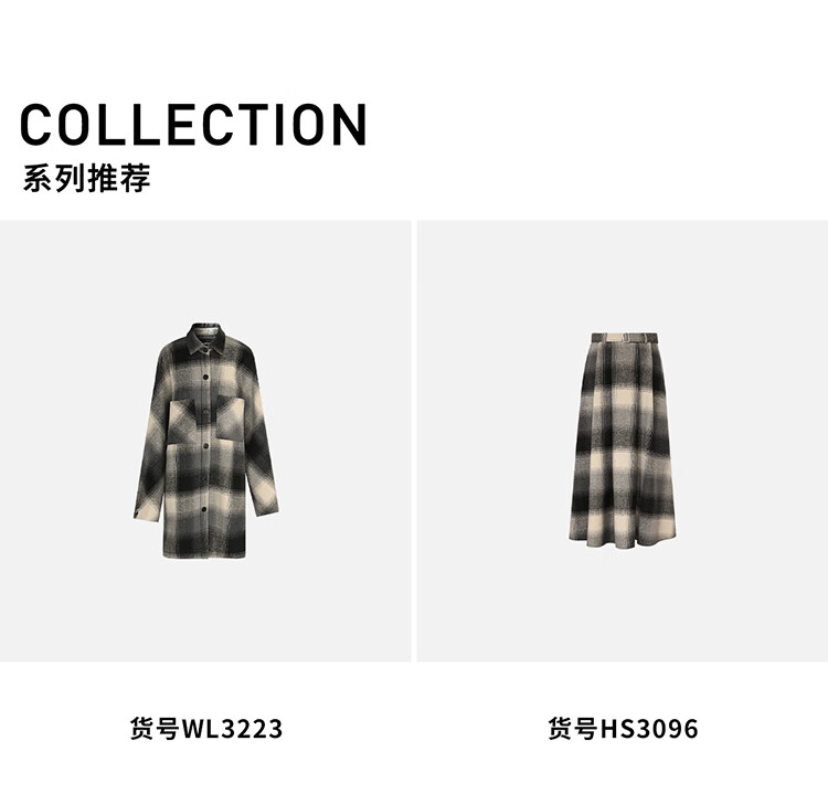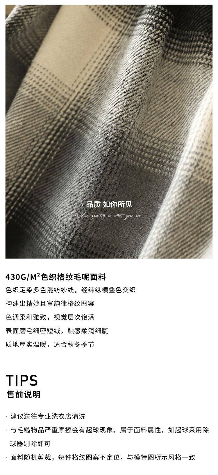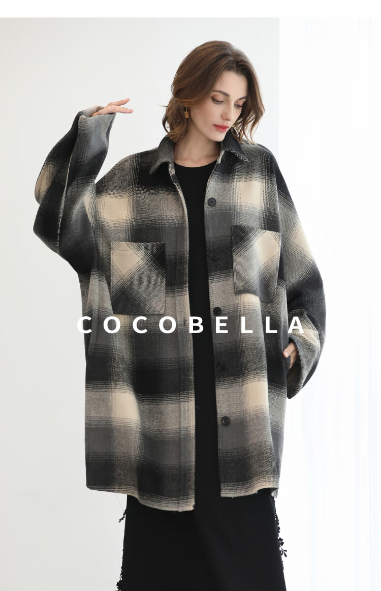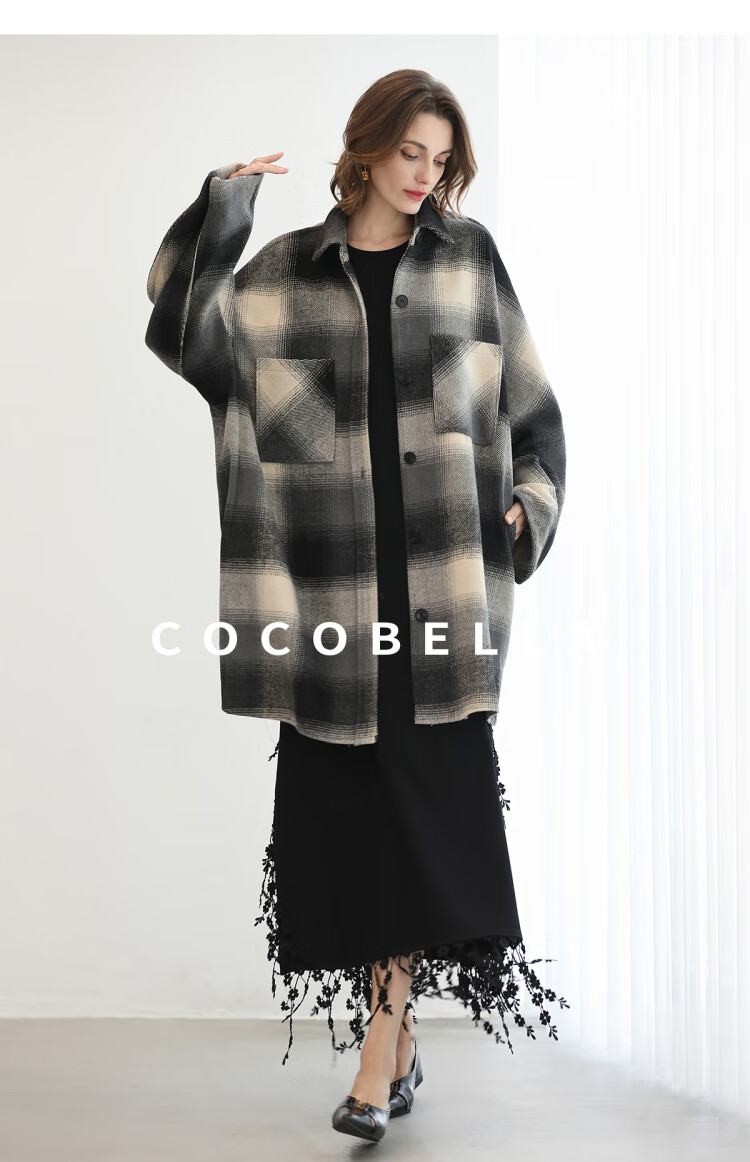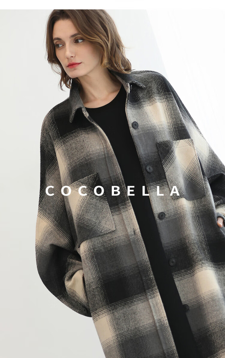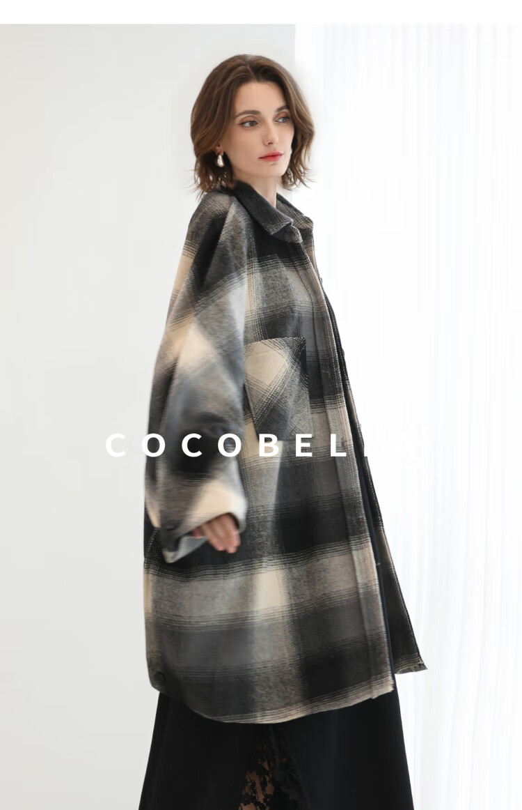 COCOBELLA英伦风格子毛呢外套秋冬中长款翻领呢子大衣WL3223