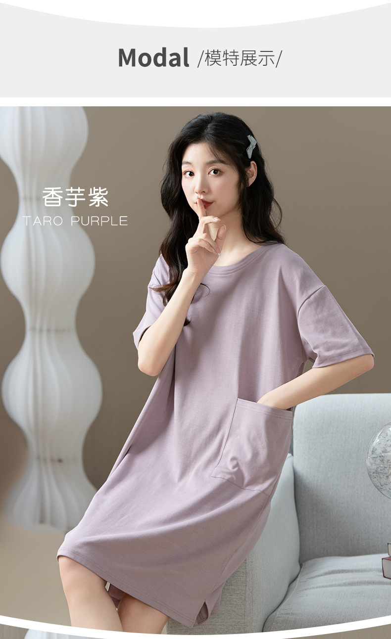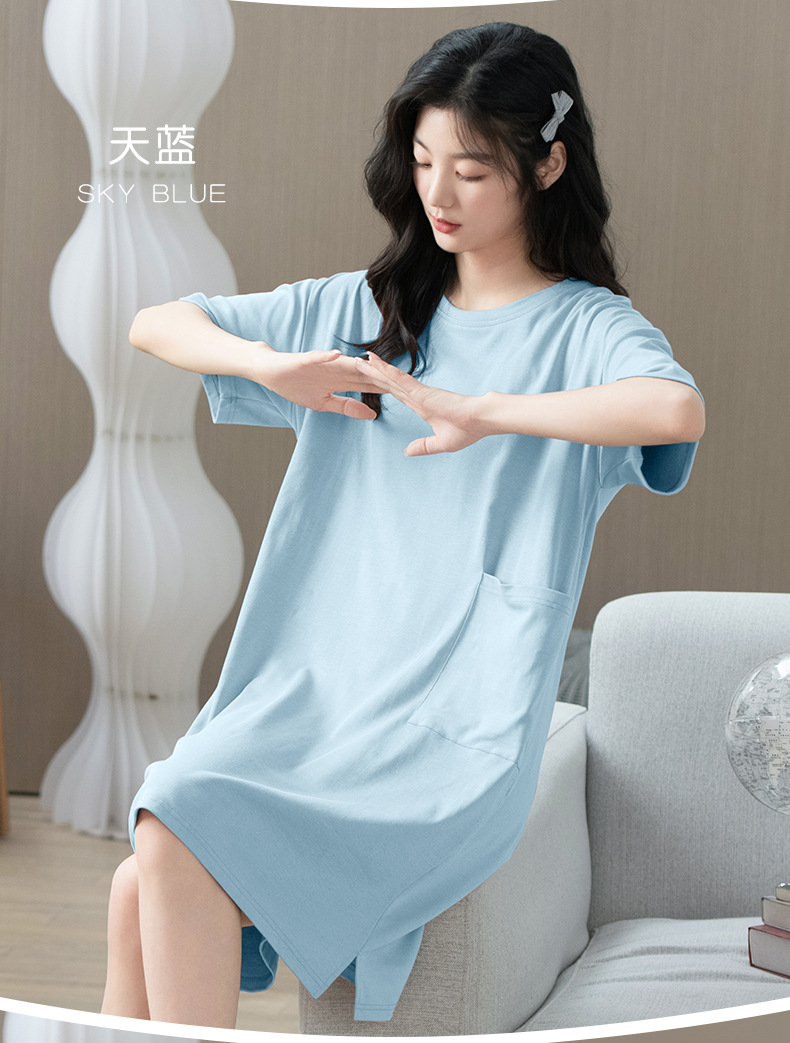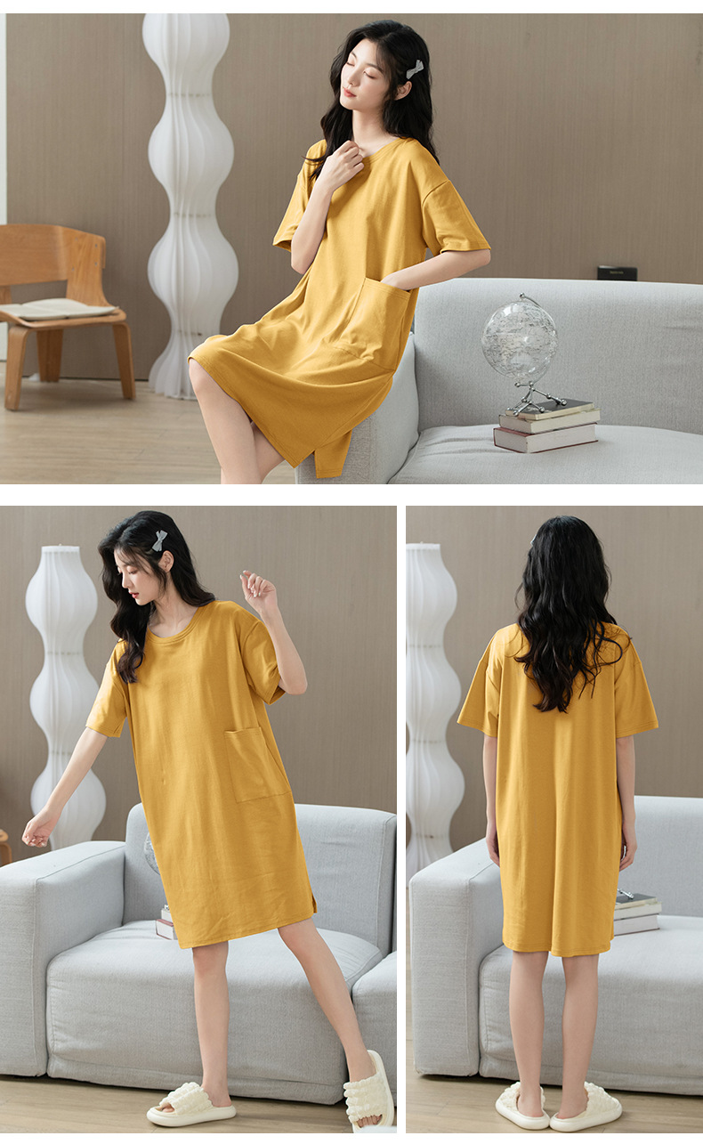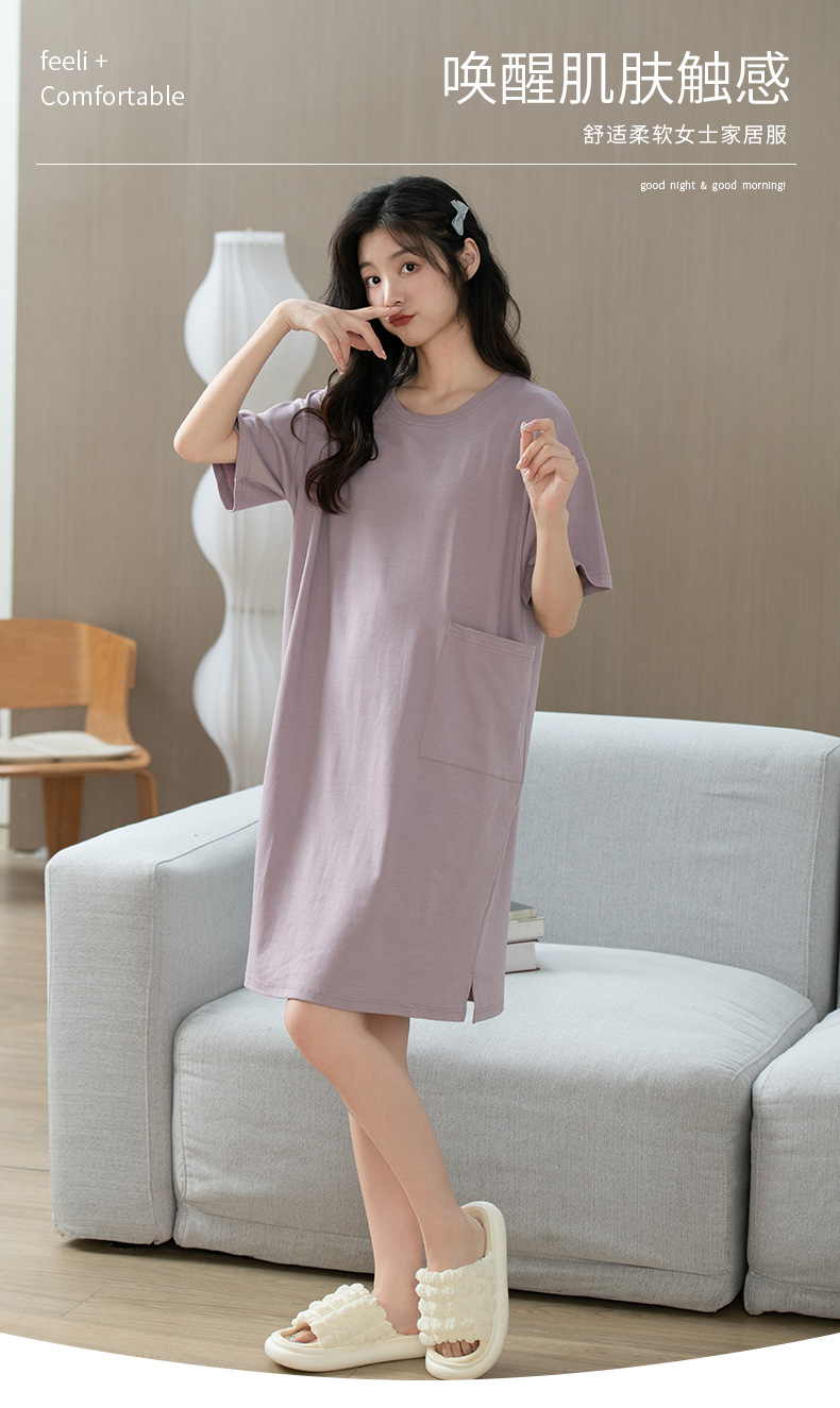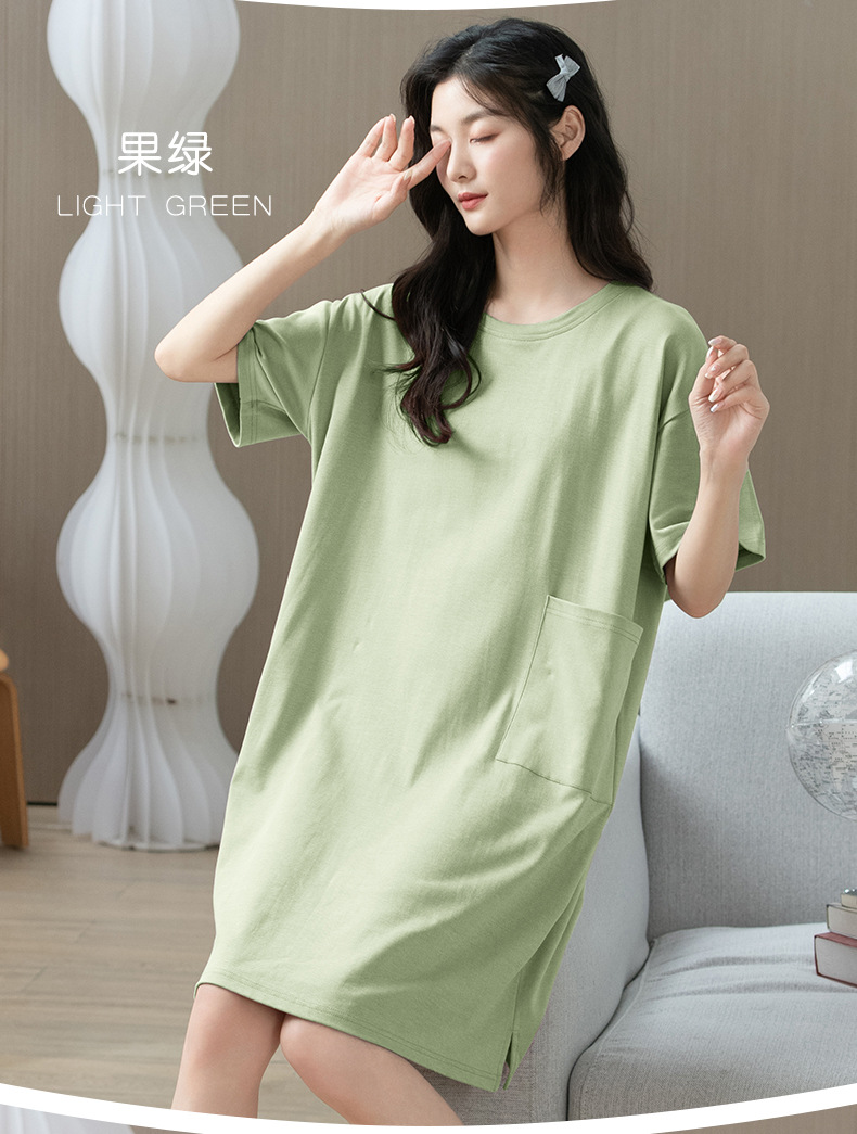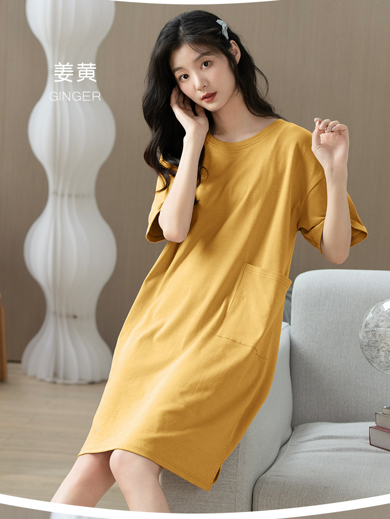 「数色可选!纯棉凉感」夏季睡衣女新款睡裙 女夏季短袖连体圆领舒适套头女士可外穿家居内衣服裙子