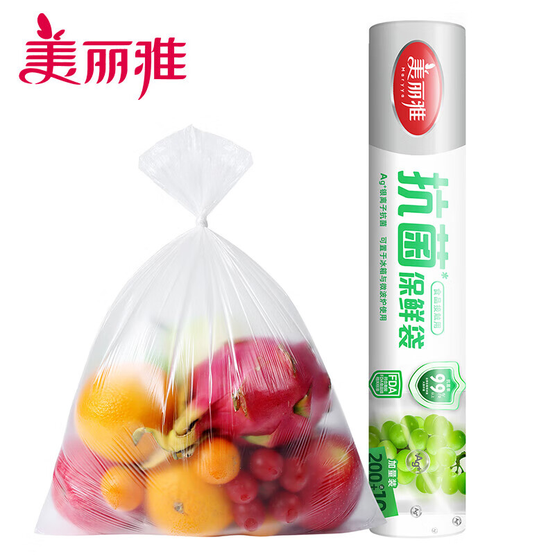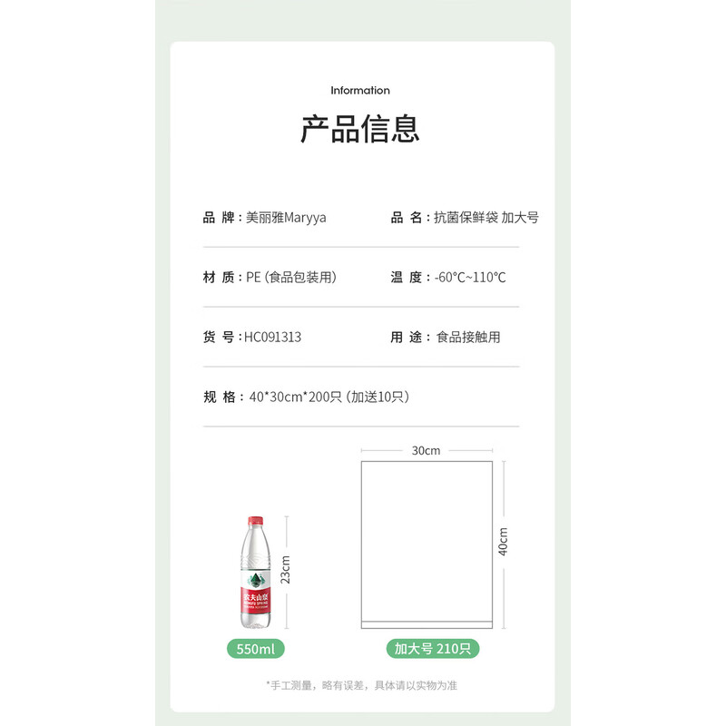 美丽雅抗菌保鲜袋加大号30*40*200个入加赠10个入(共210个)
