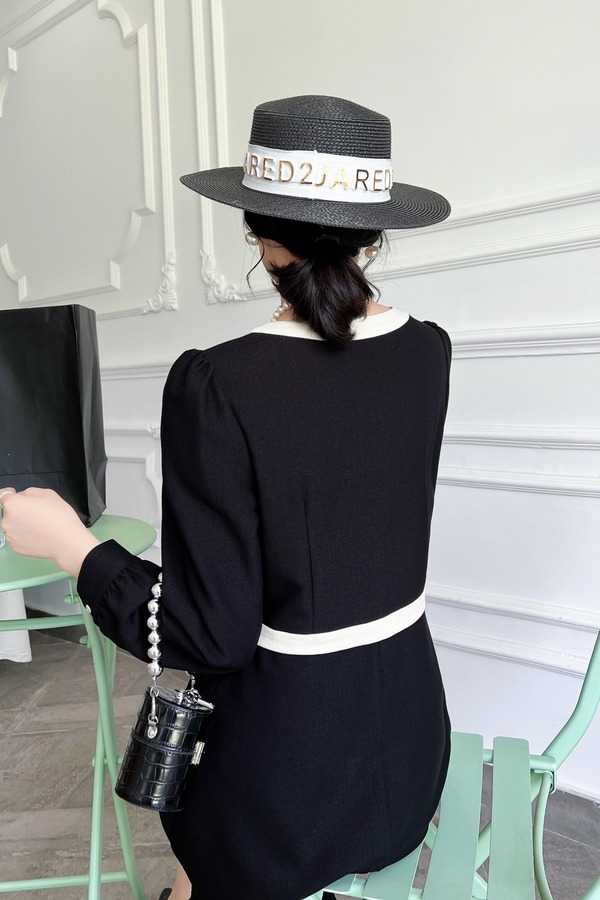 Le Malene 黑白小香风优雅针织连衣裙 16848