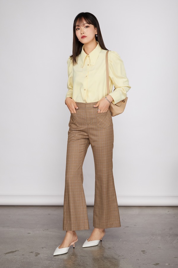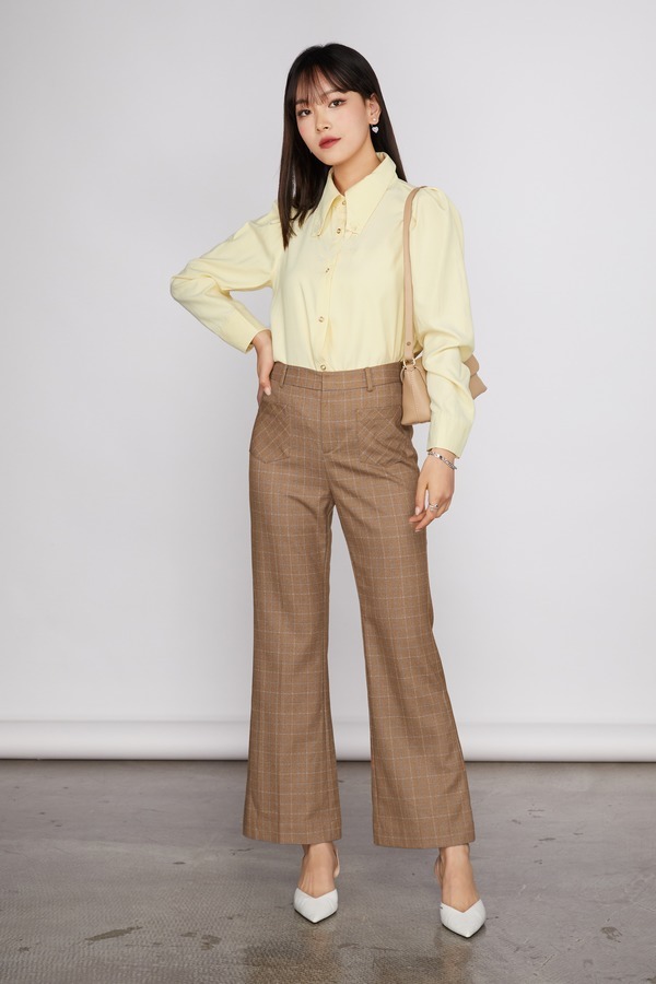 amadella 黄色泡泡袖气质百搭长袖衬衣 11317
