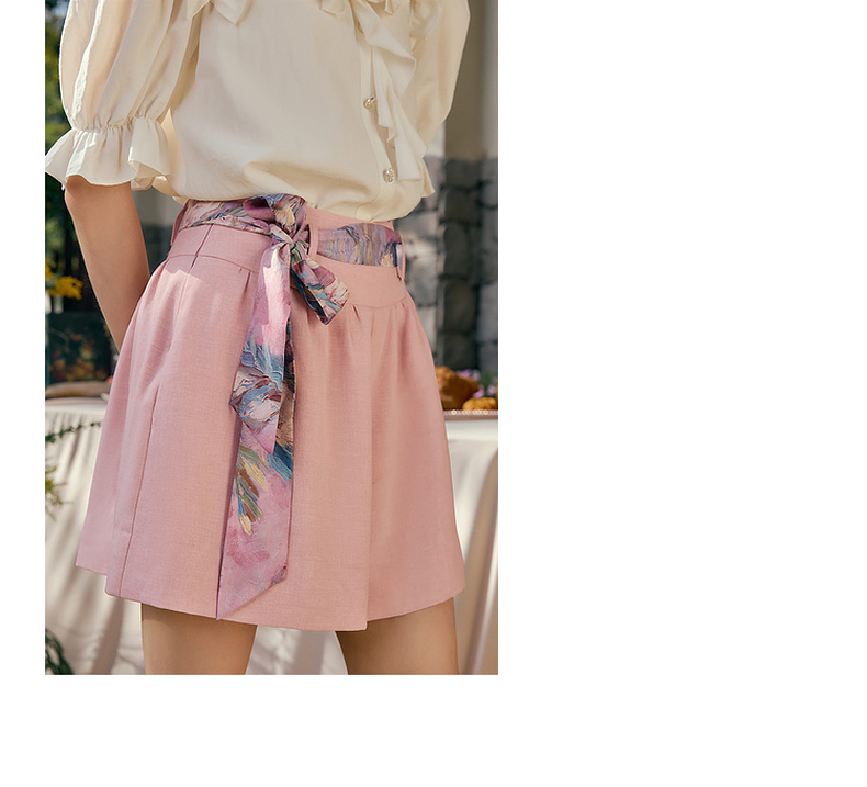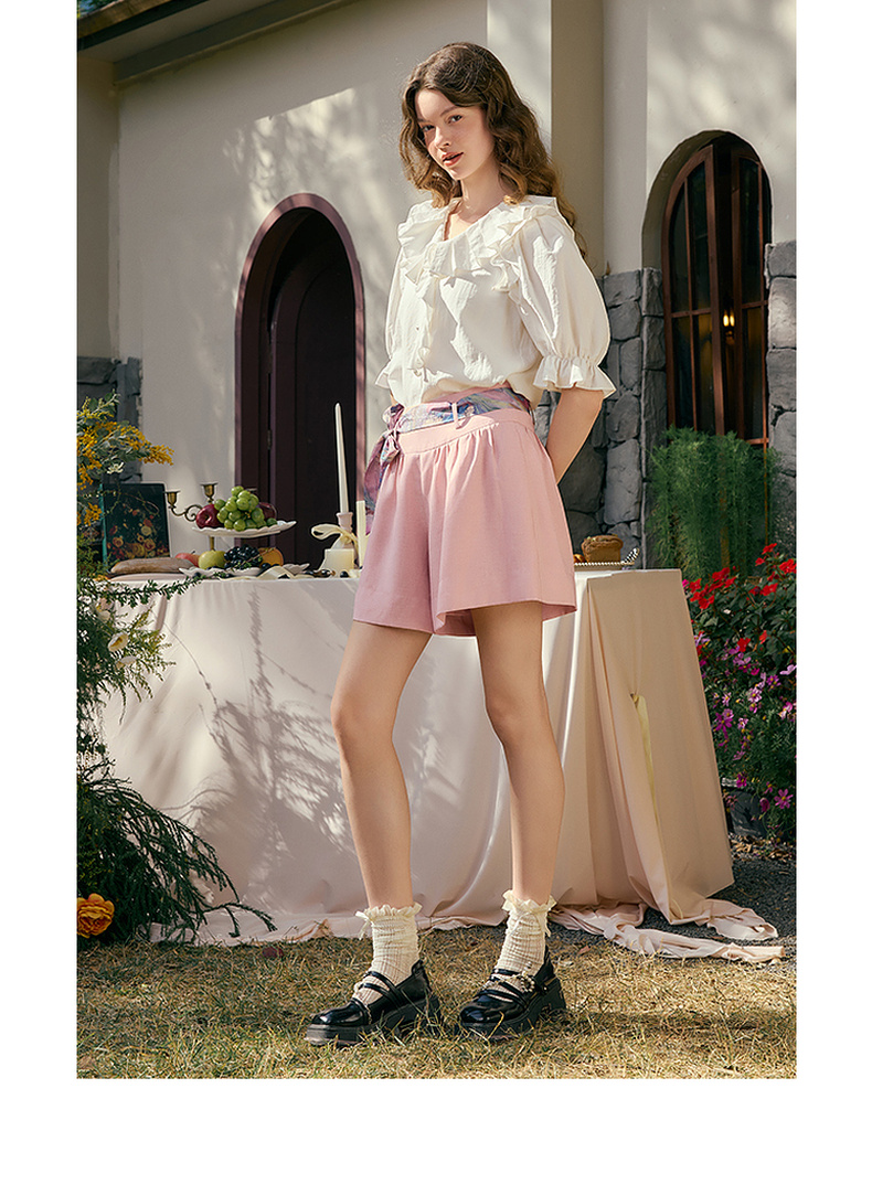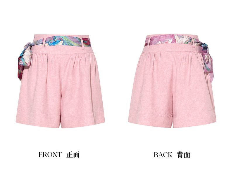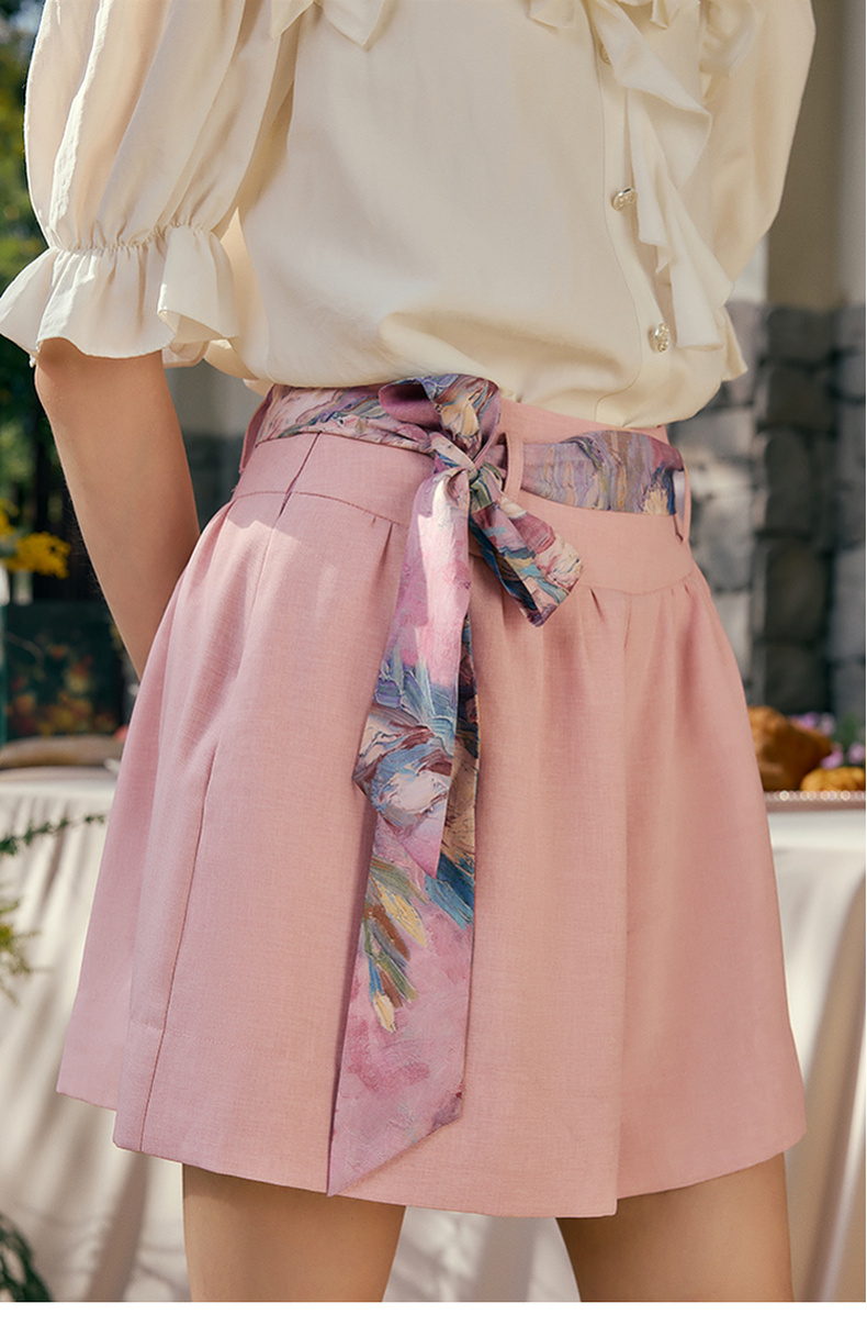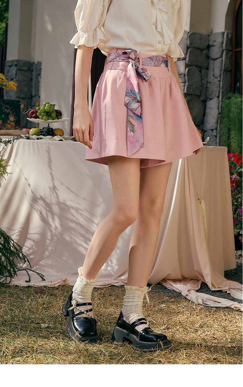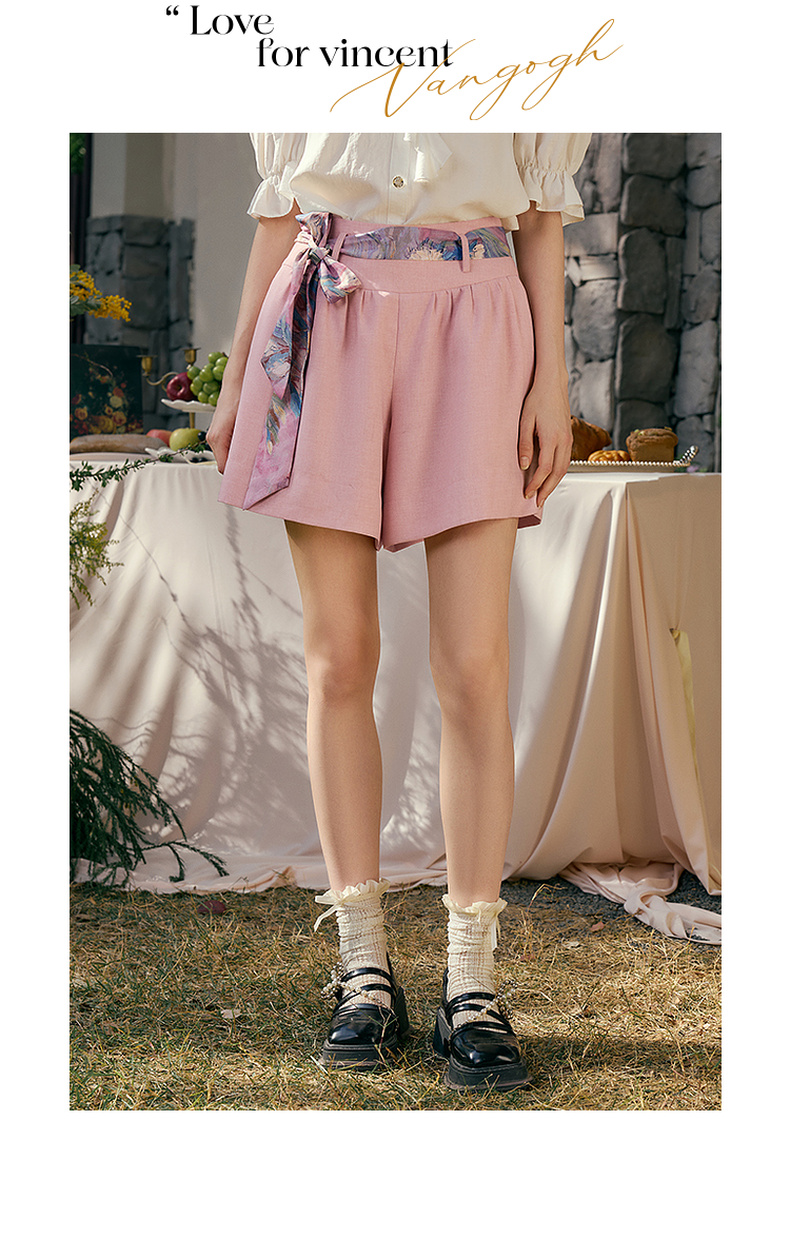 两三事梵高文艺蔷薇信羽2025春季新款百搭印花腰带高腰短裤女宽松S25CKZ474