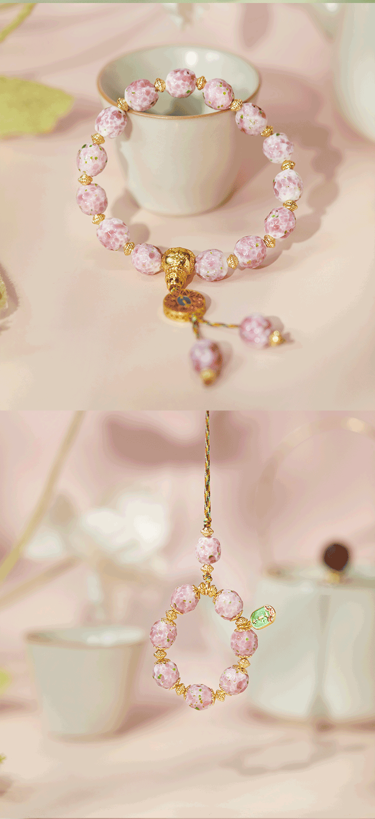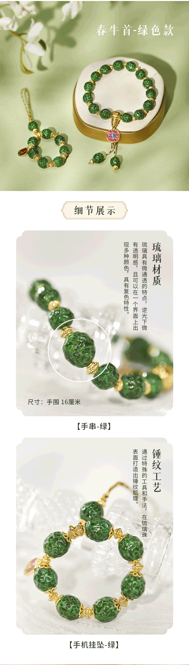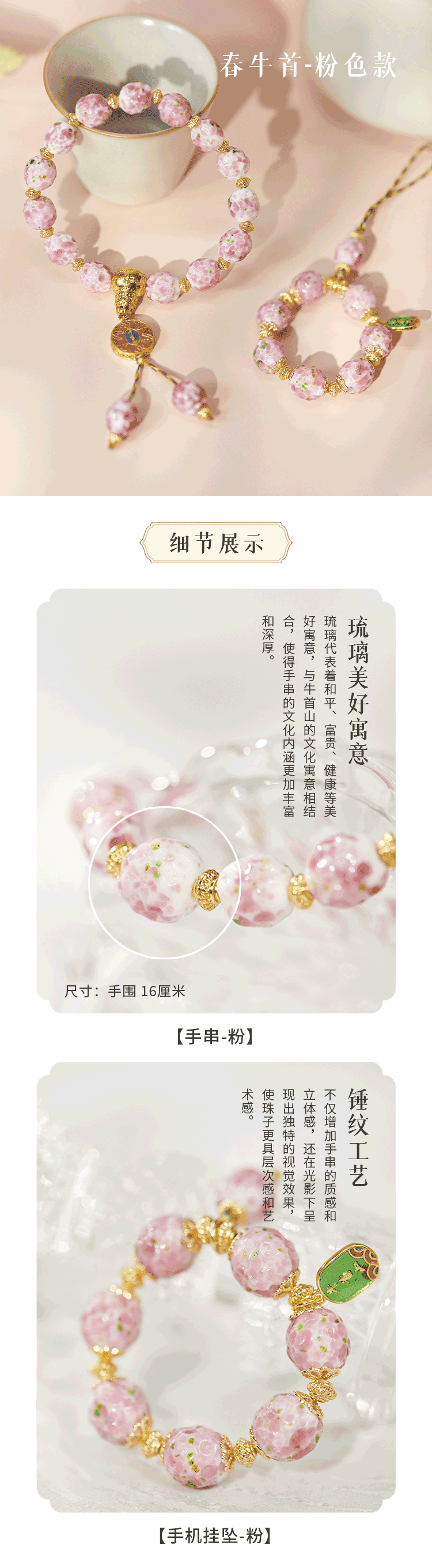 牛首山香灰金银箔手工锤纹琉璃春牛首系列手链手机挂坠送女友闺蜜