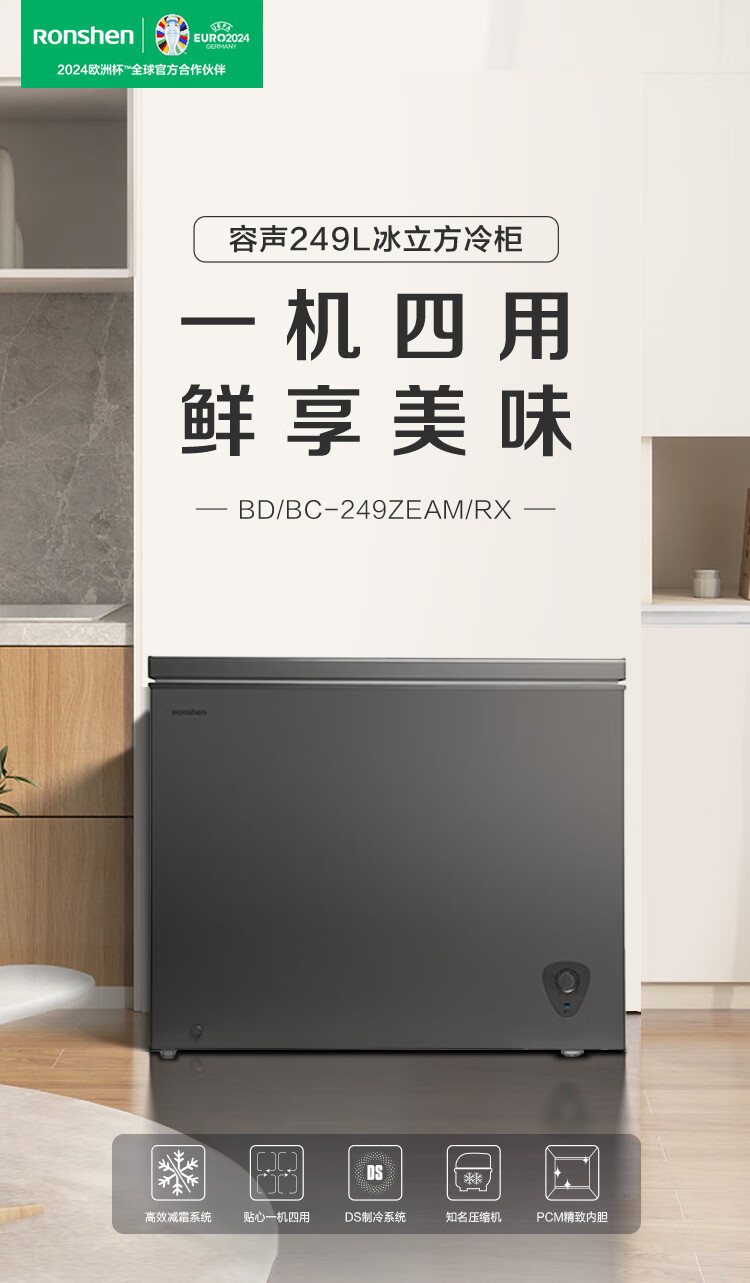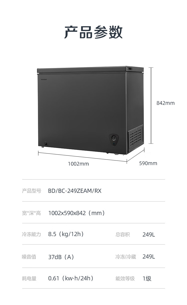 容声249升大容量冷柜家用商用保鲜冷冻两用节能减霜 灰色BD/BC-249ZEAM/RX