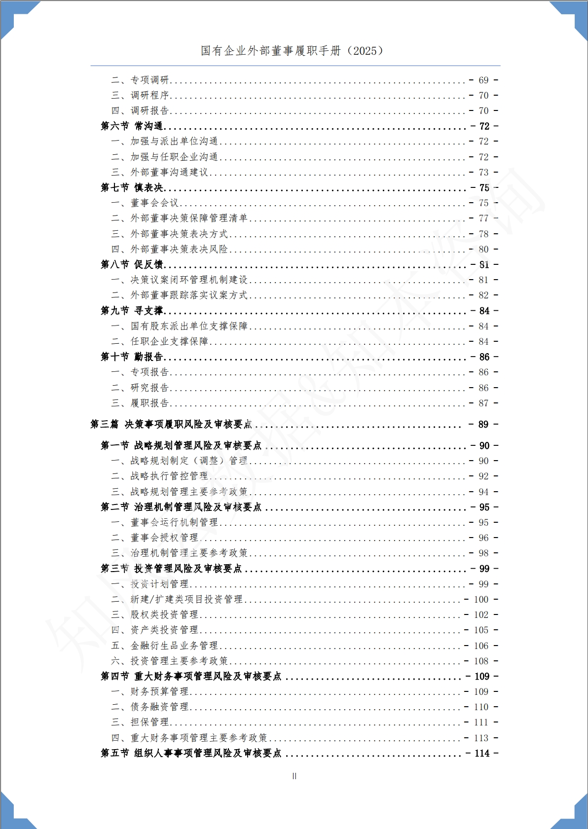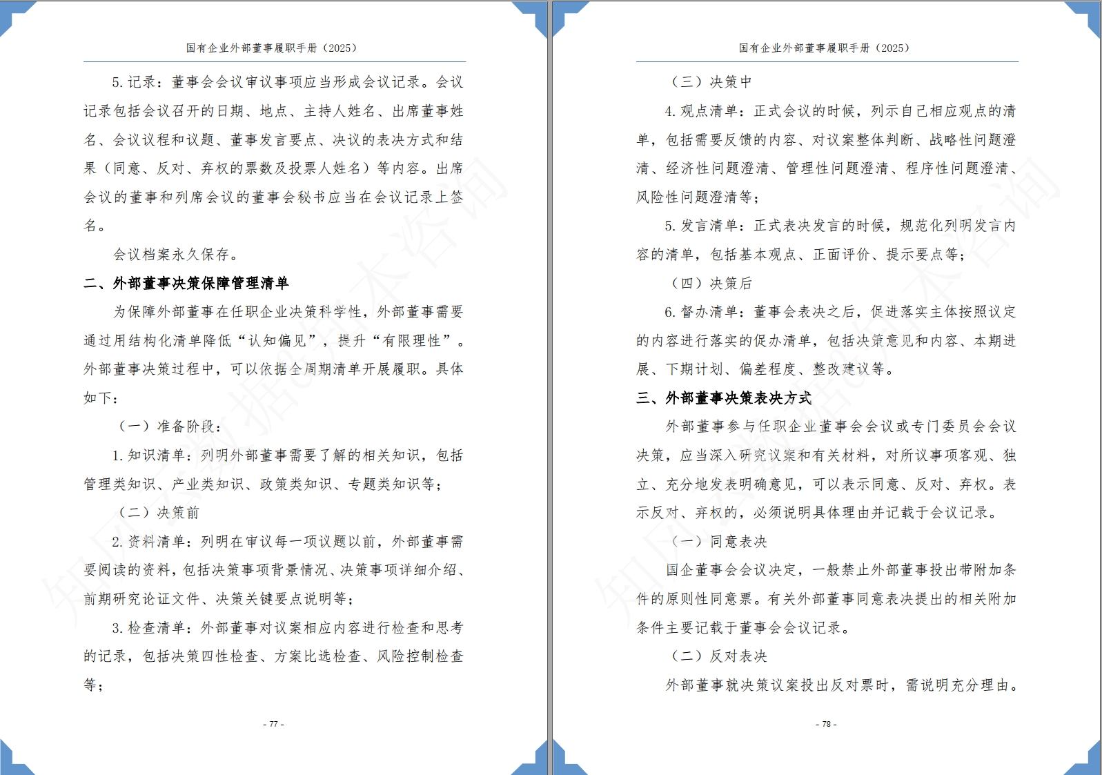 结合国有企业完善现代公司治理,提升外部董事规范管理和履职能力水平的要求,知本咨询根据国家有关法律法规和国企治理政策规定,借鉴国有企业外部董事履职管理优秀经验和案例,编写形成《国有企业外部董事履职手册(2025)》(以下简称《履职手册》),作为国有企业外部董事履职行权的参考文件。