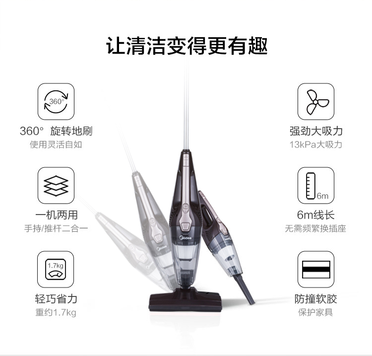 美的(Midea)手持推杆二合一大吸力吸尘器