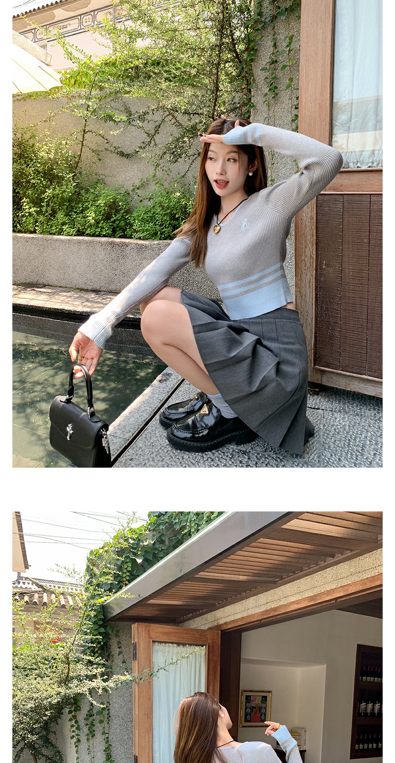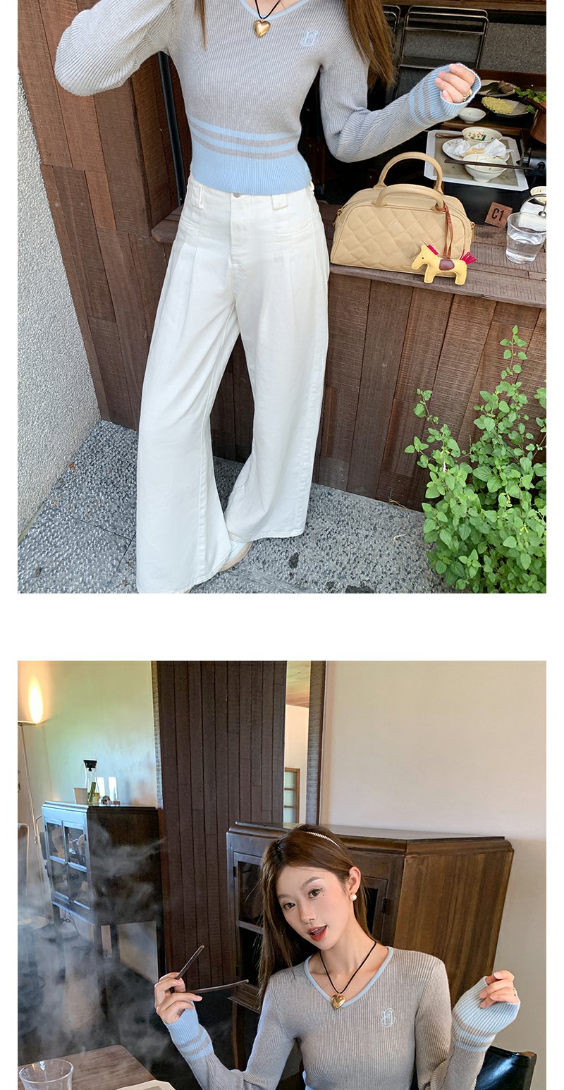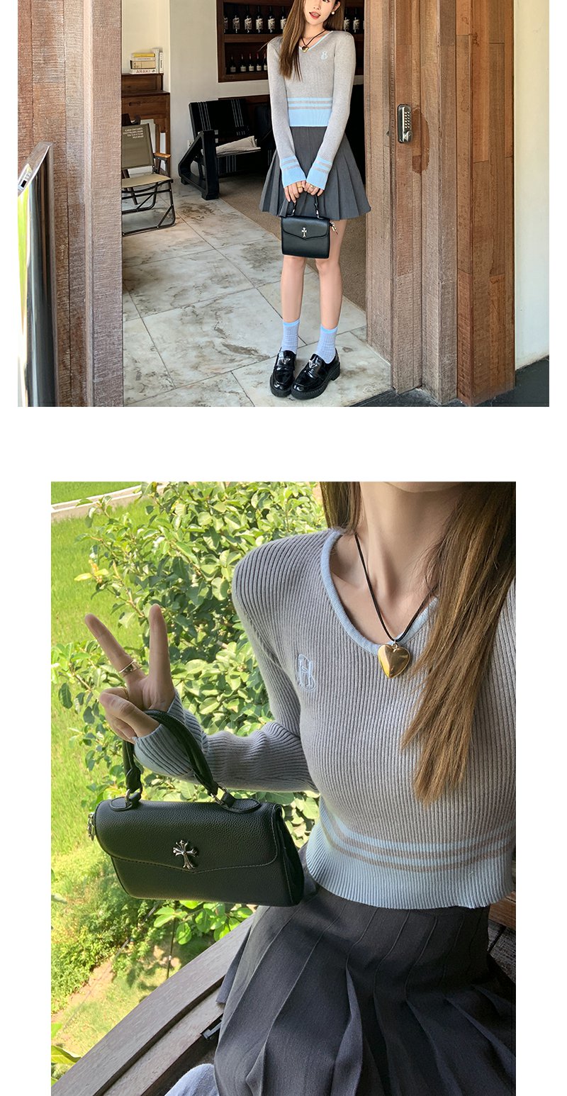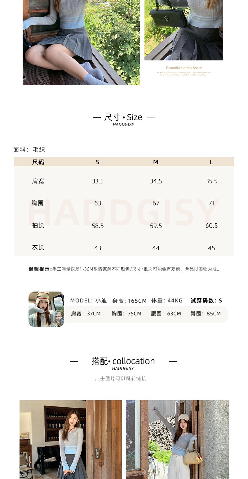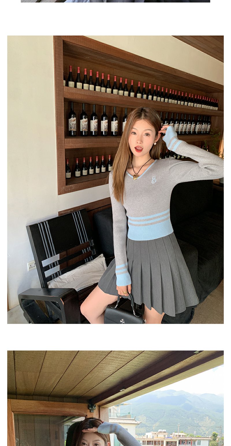 <曾小咸推荐> 设计感撞色拼接灰色短款V领打底衫