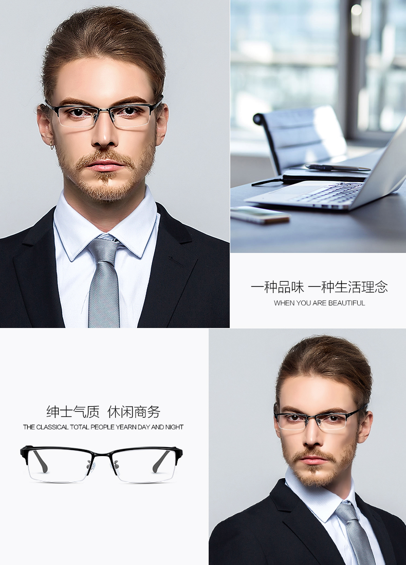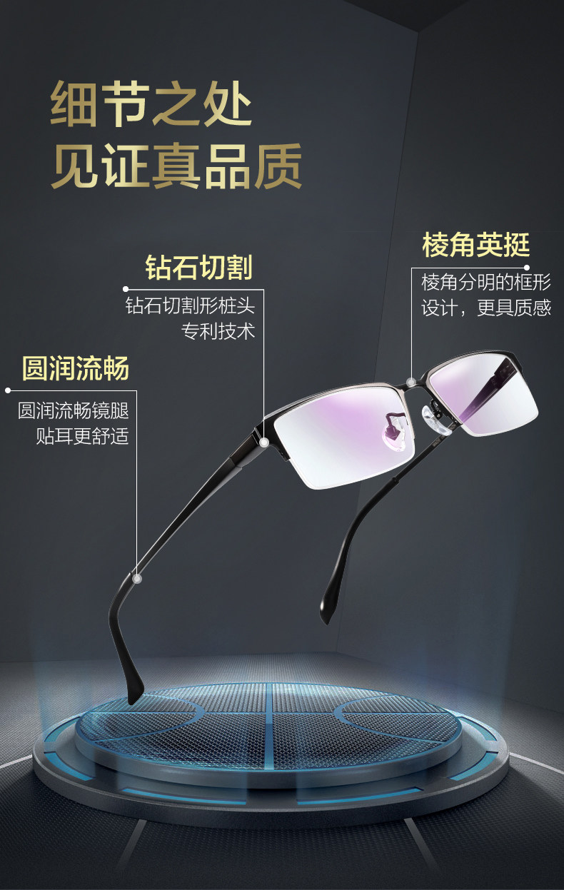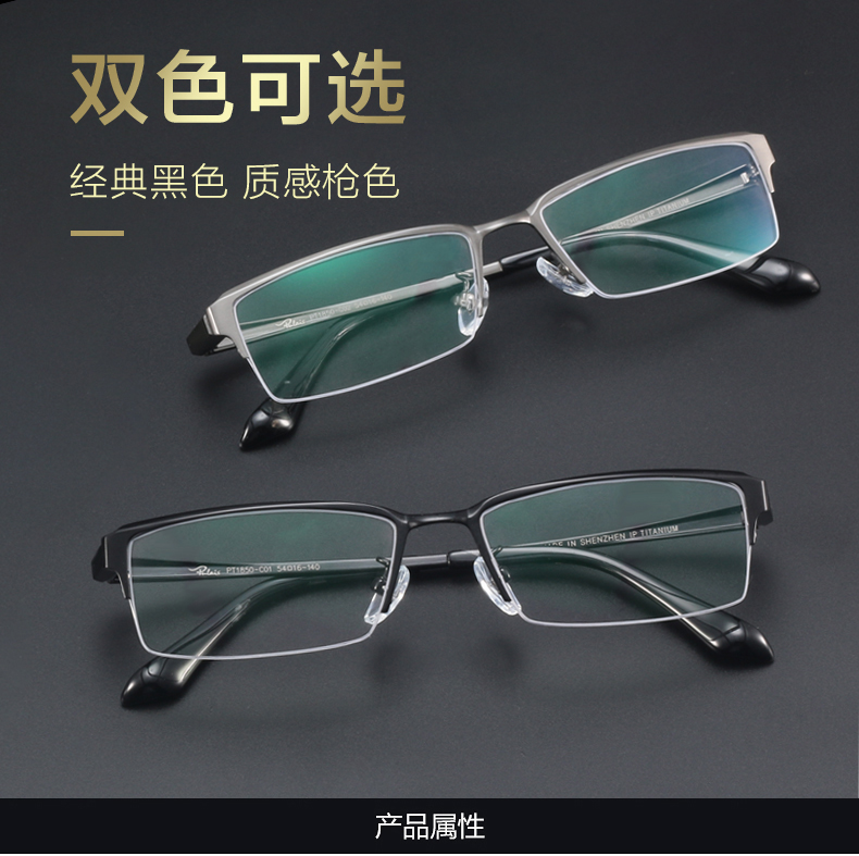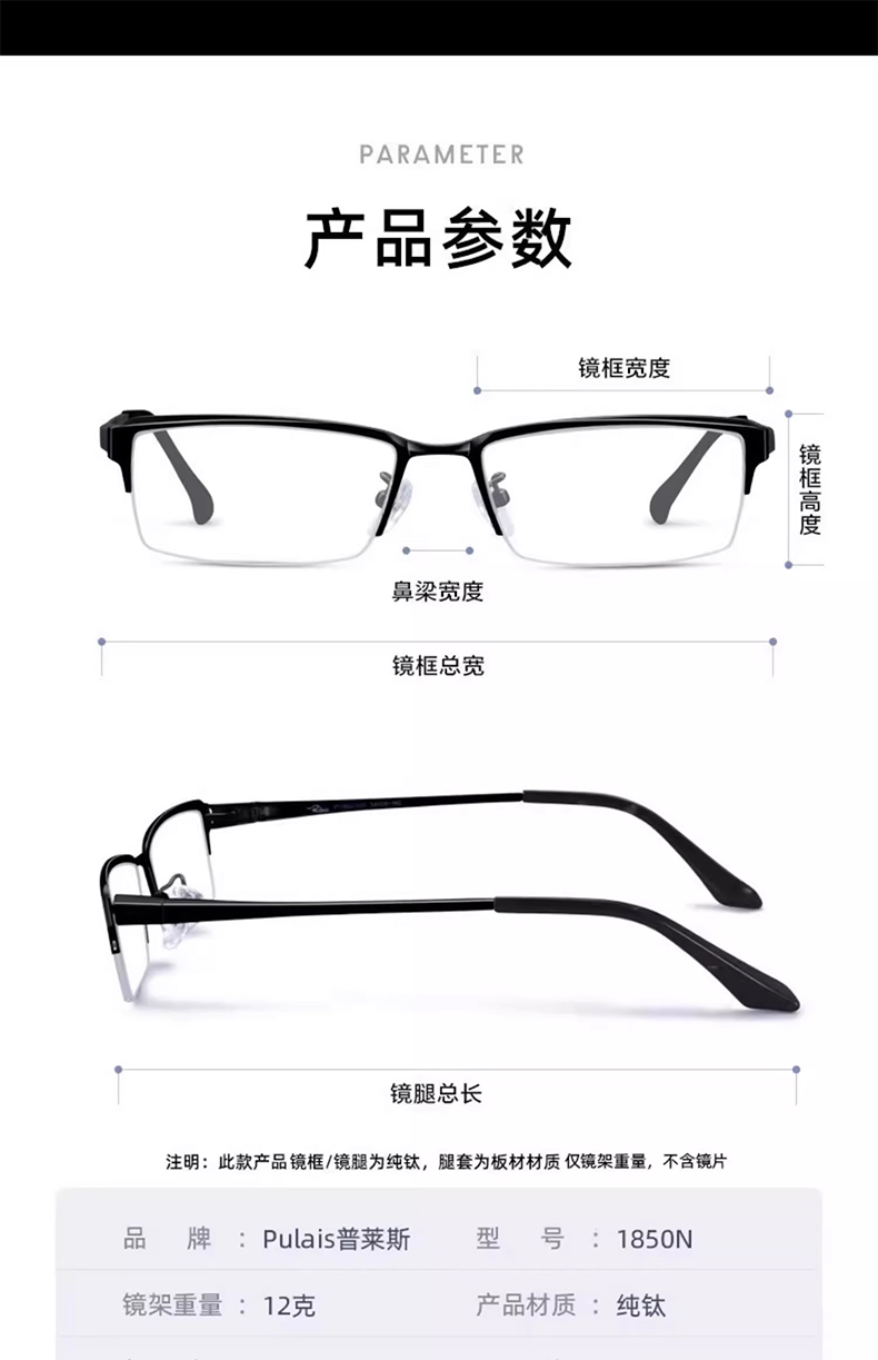 普莱斯PT1850 纯钛 半框 轻盈商务男款 大小两个码数 双色可选