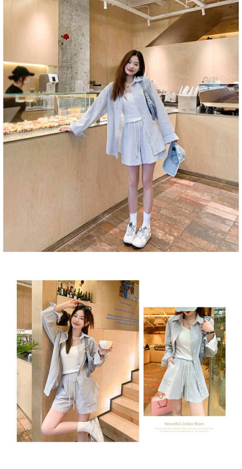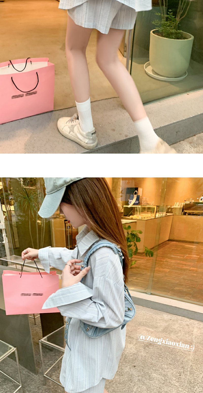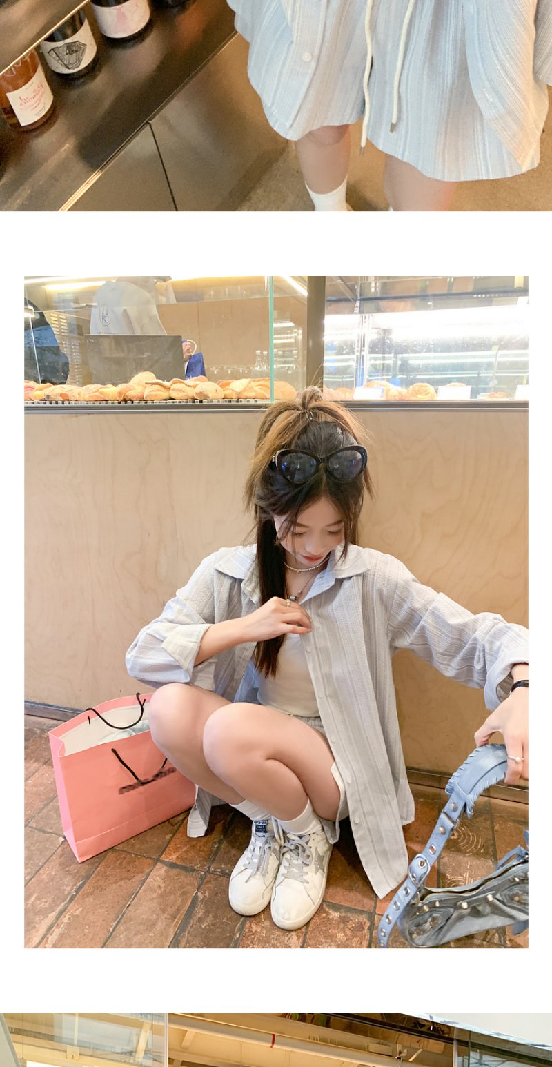 <曾小咸推荐>【休闲日常】蓝色条纹休闲套装