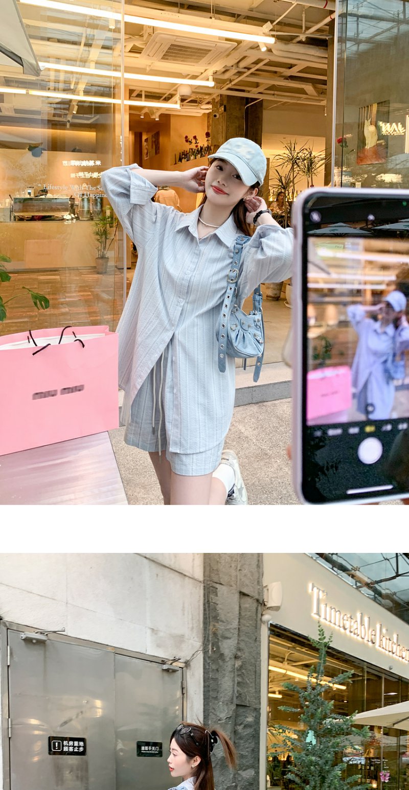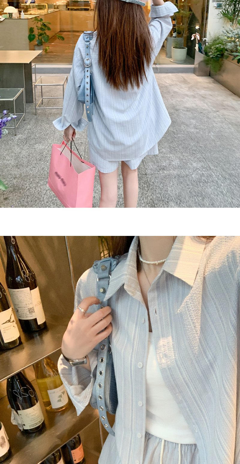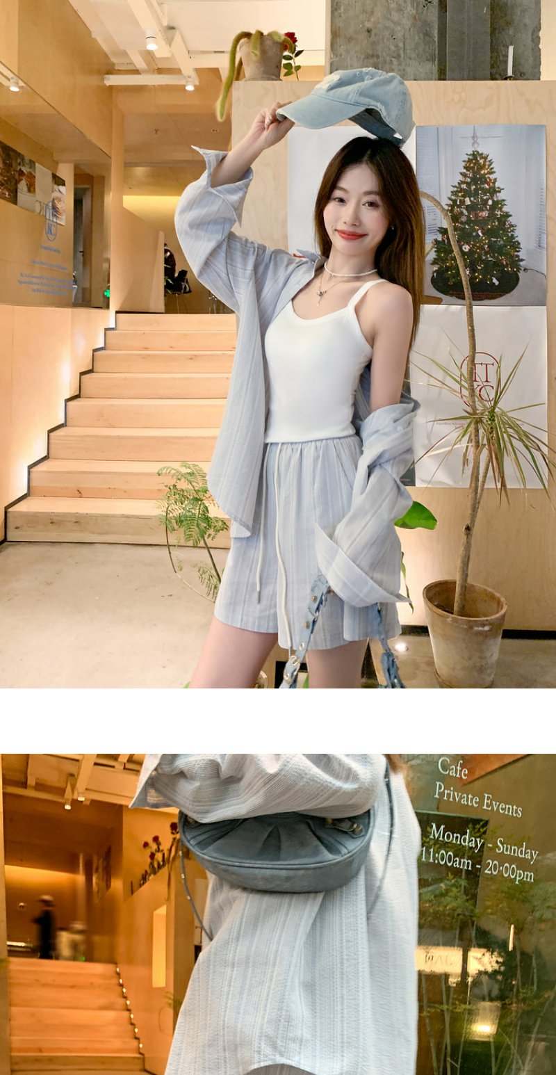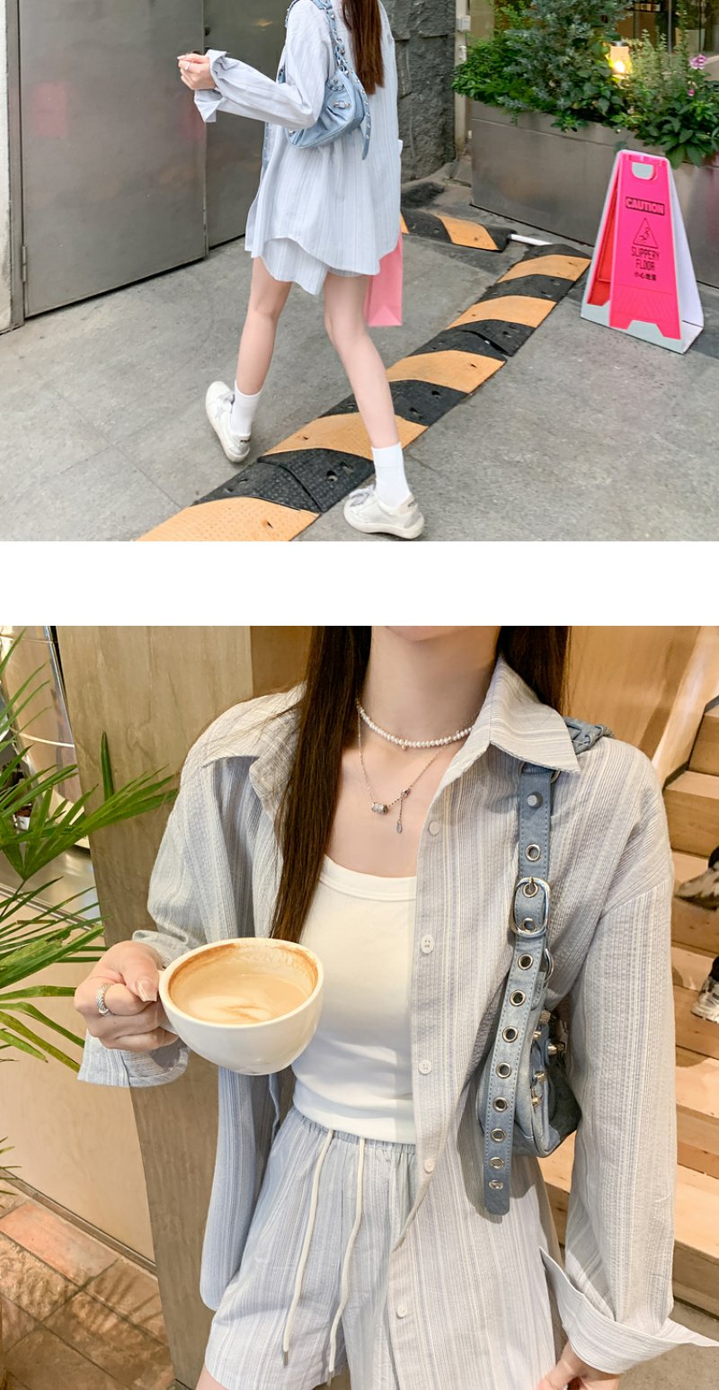 <曾小咸推荐>【休闲日常】蓝色条纹休闲套装