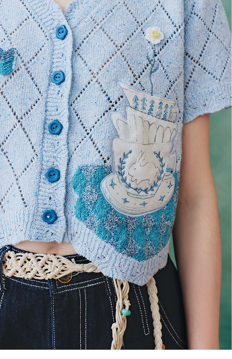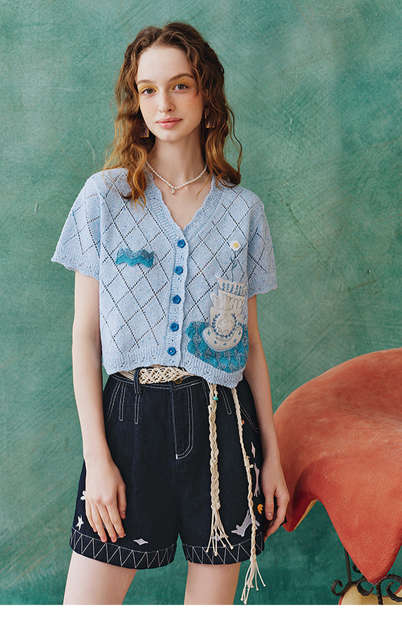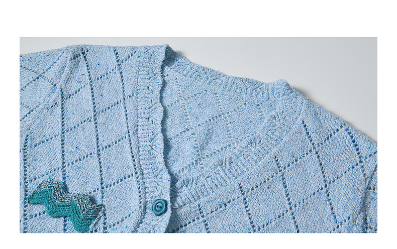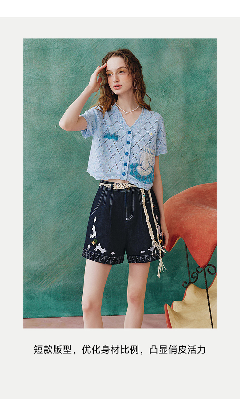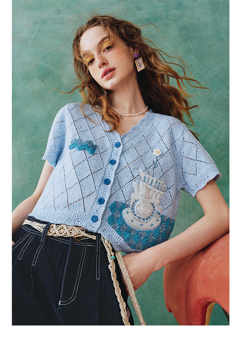 两三事 纯真兔叽 2025夏季新款复古贴布绣立体钩花短款针织开衫女