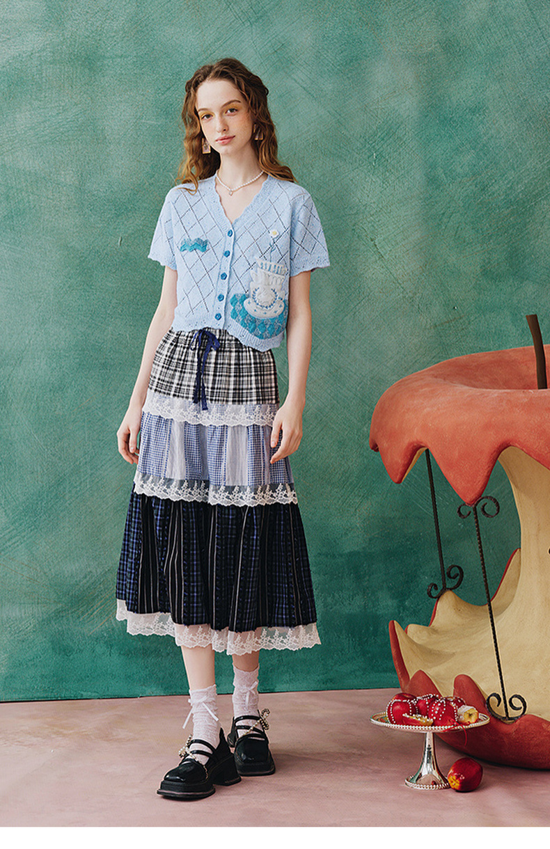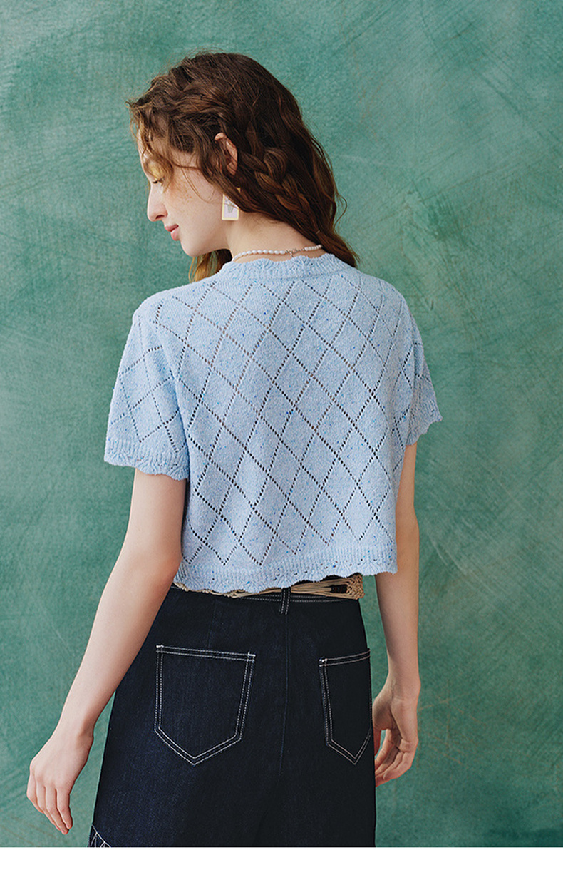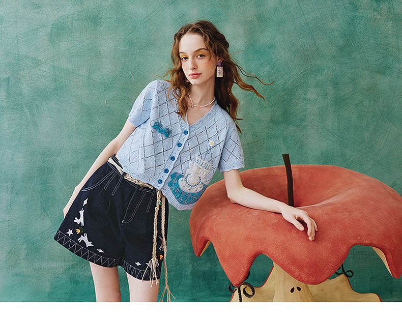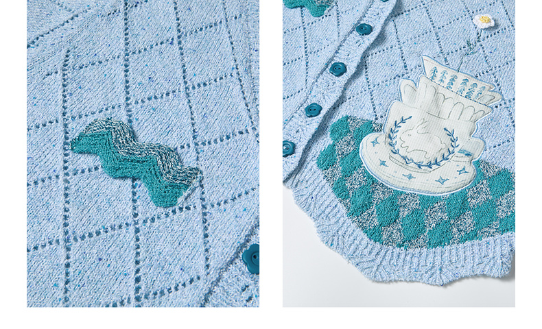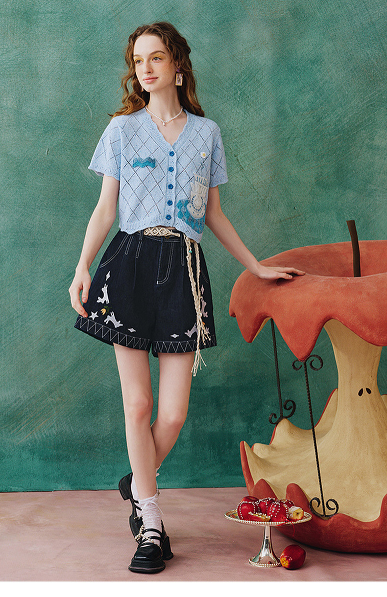 两三事 纯真兔叽 2025夏季新款复古贴布绣立体钩花短款针织开衫女