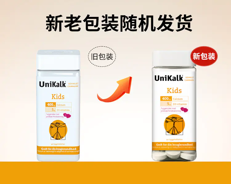 【海淘】丹麦Unikalk进口儿童咀嚼钙片草莓味3岁+90粒