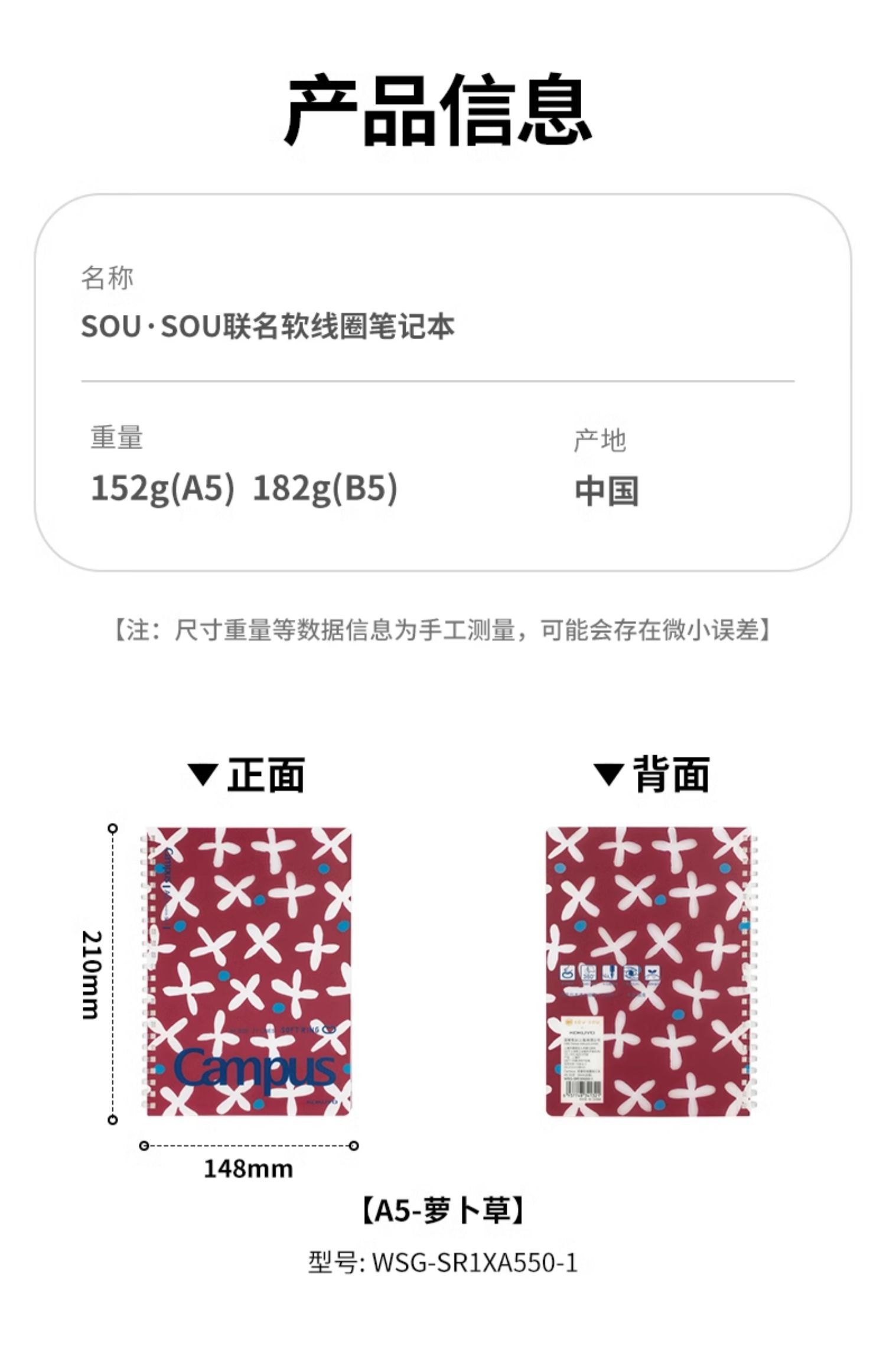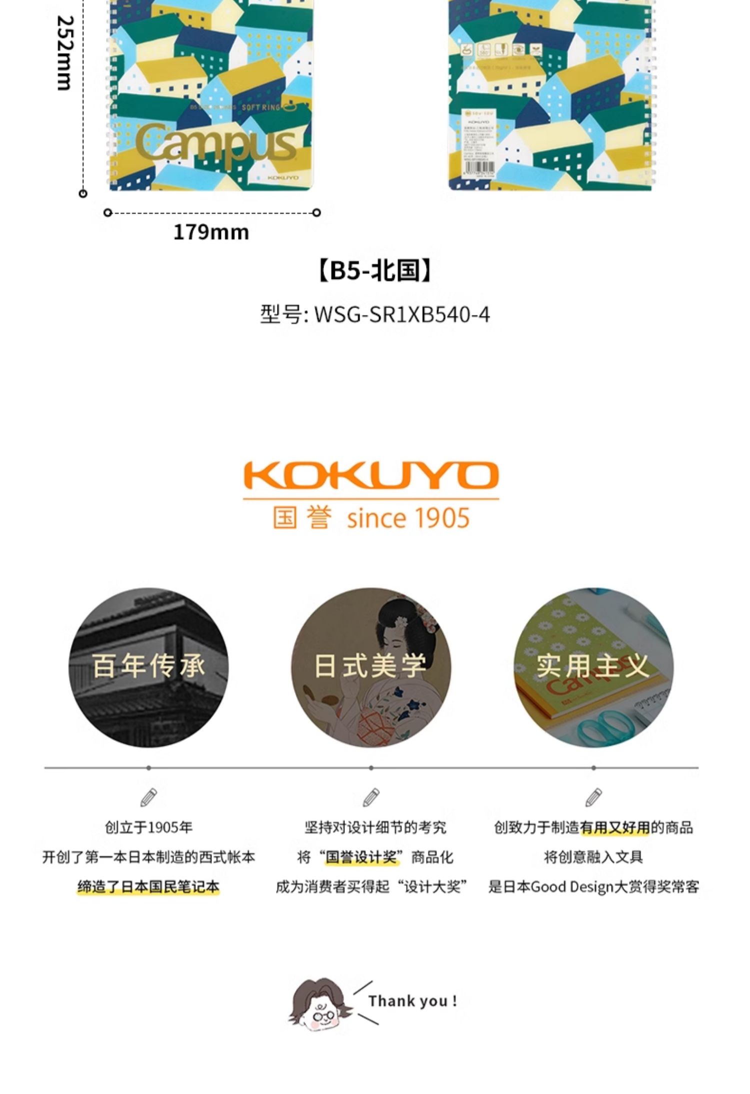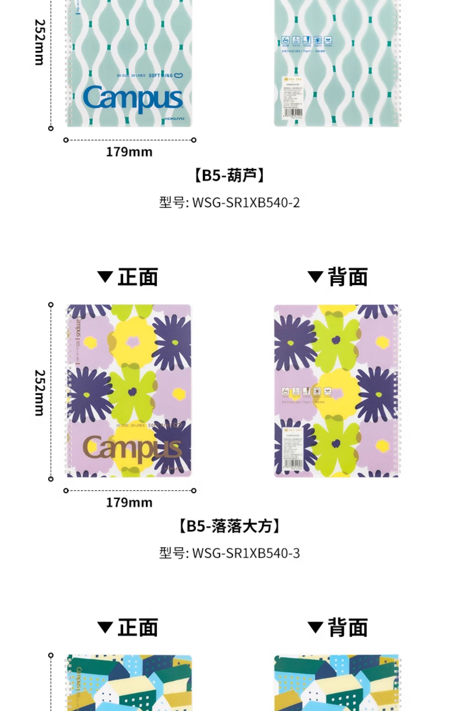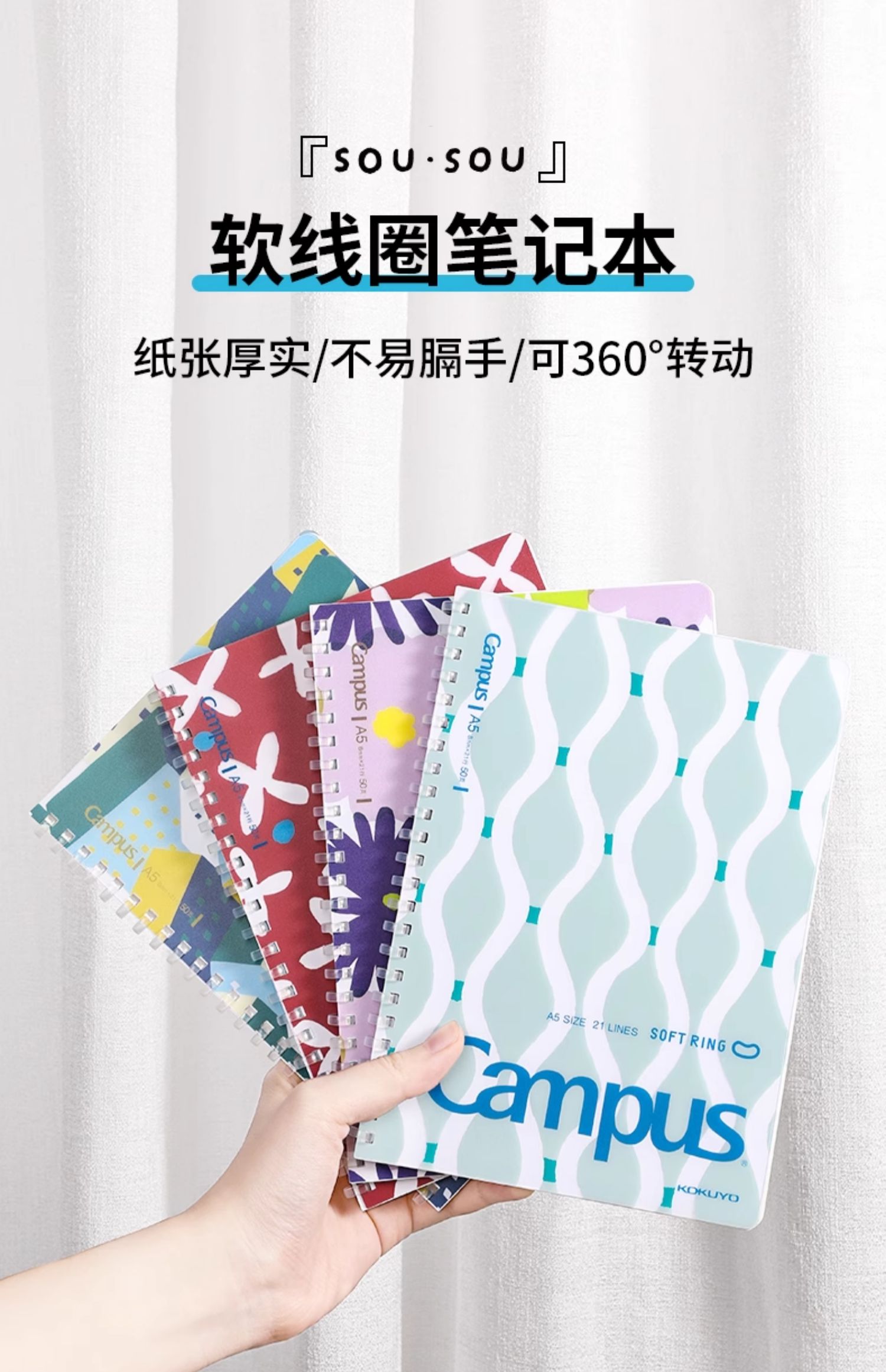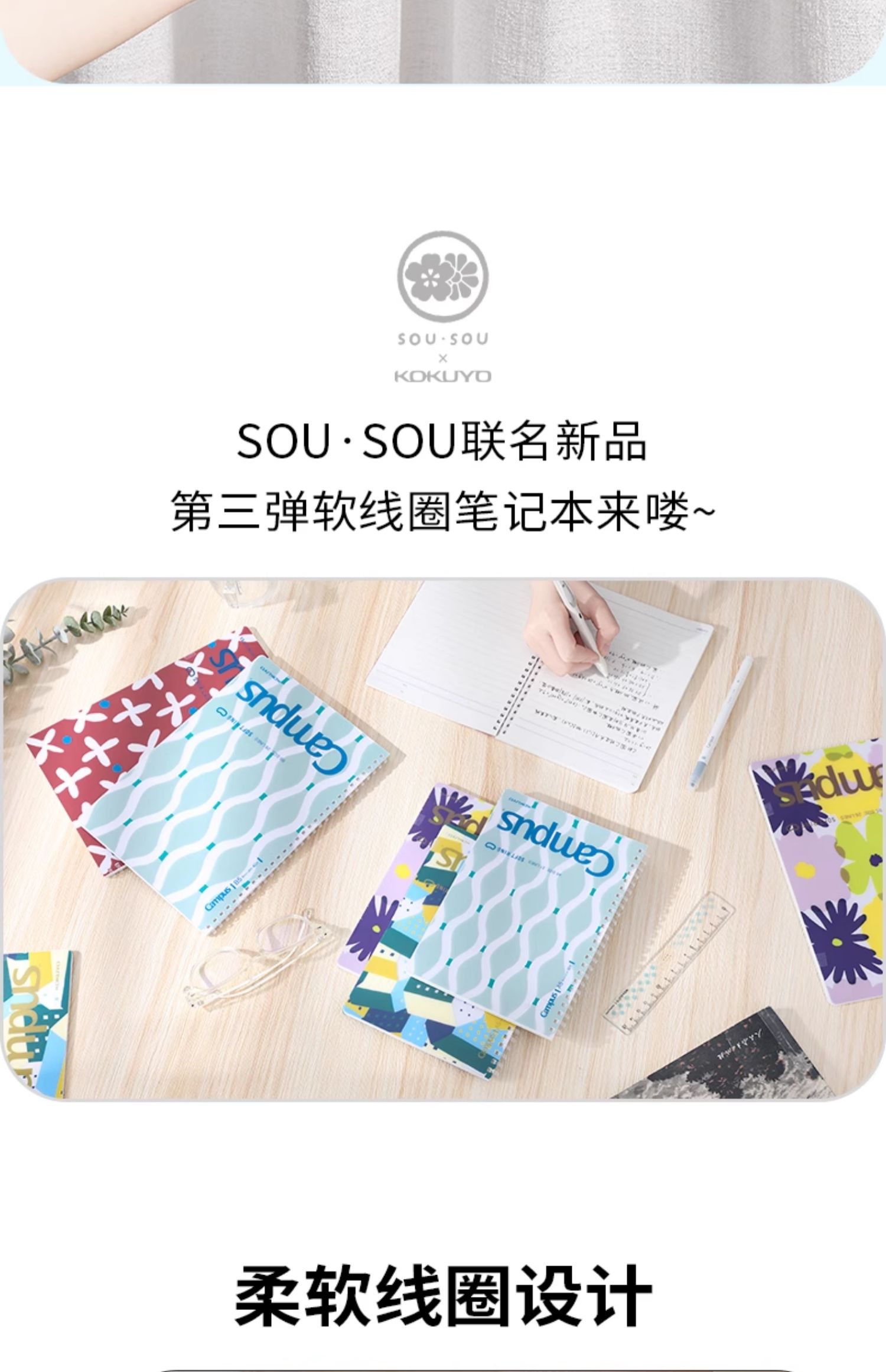 SOU·SOU新品第三弹国誉软线圈笔记本Campus中小学生记事本不易硌手B5横线本