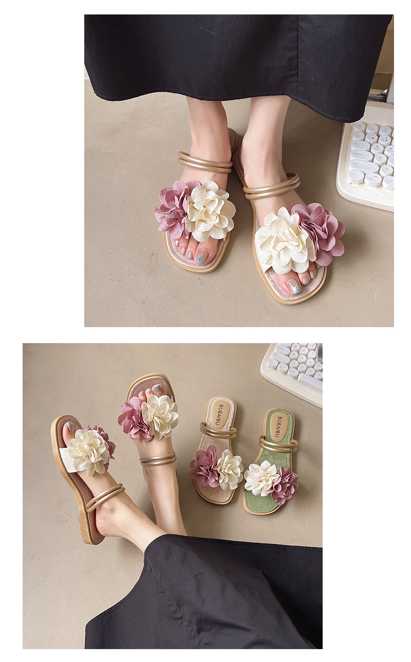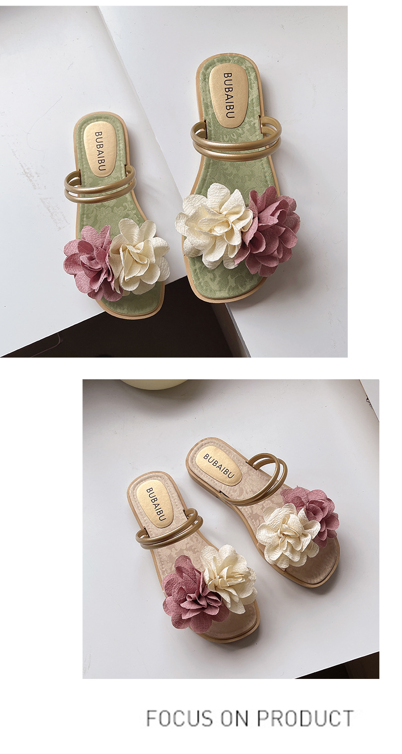 【 行走的春日画报❗️复古立体花凉拖】手工立体双色花朵装饰,层次丰富,自带复古油画感,拍照超出片,轻量软弹鞋底,久穿不累脚,一字拖鞋外穿居家轻便百搭平底拖鞋L