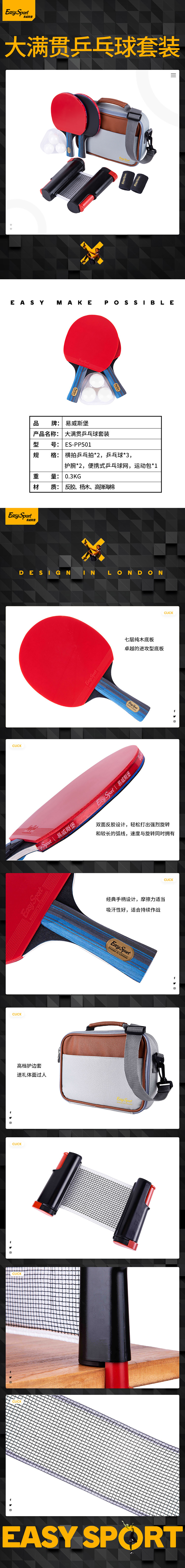 【精选】易威斯堡纯木底板双面反胶乒乓球拍9件套