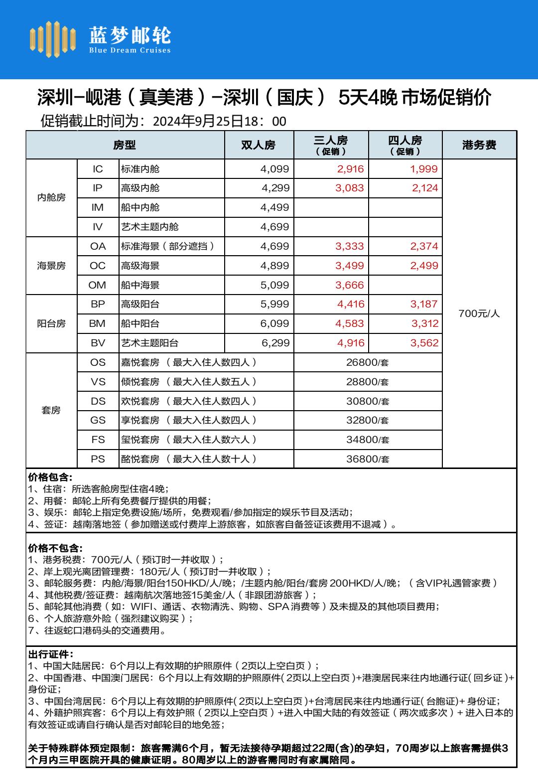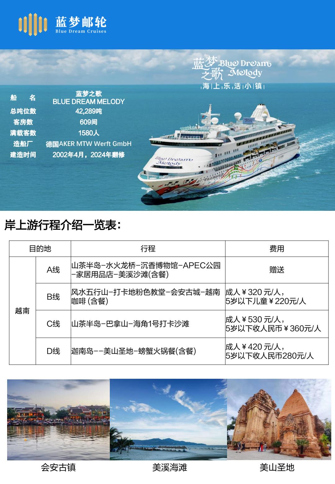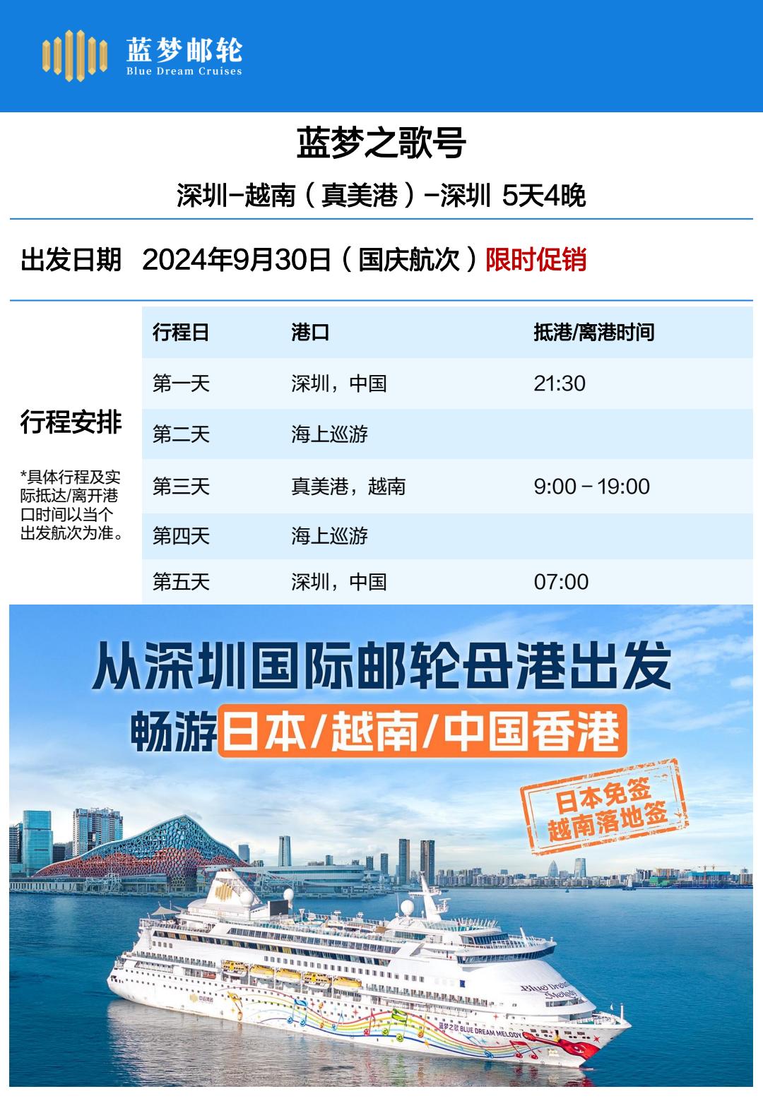 蓝梦邮轮<蓝梦之歌号>深圳-越南真美港-深圳5天4晚