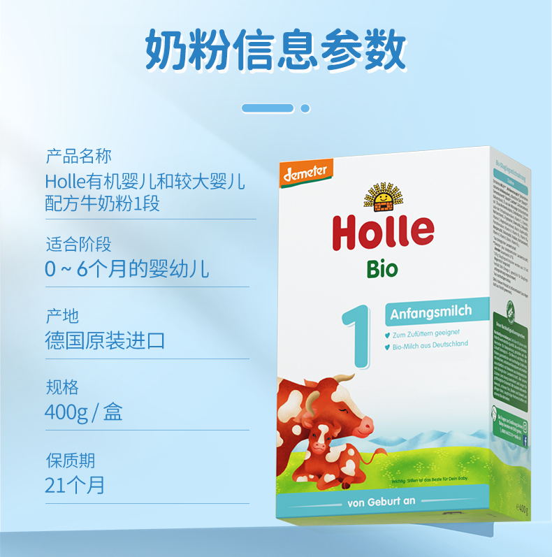 Holle(泓乐)有机婴儿配方奶粉1段400g (0-6个月) 德国原装进口 保税区发货 德米特有机认证 效期到2027-1-10 含税价(未税价:149元/盒)