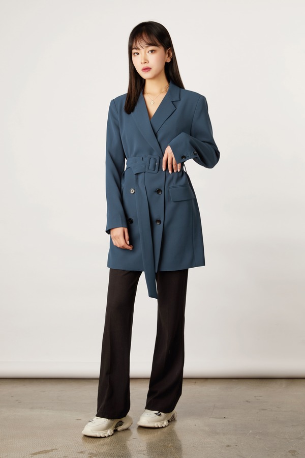 ESTELLICA 双排扣收腰西装长外套 11143