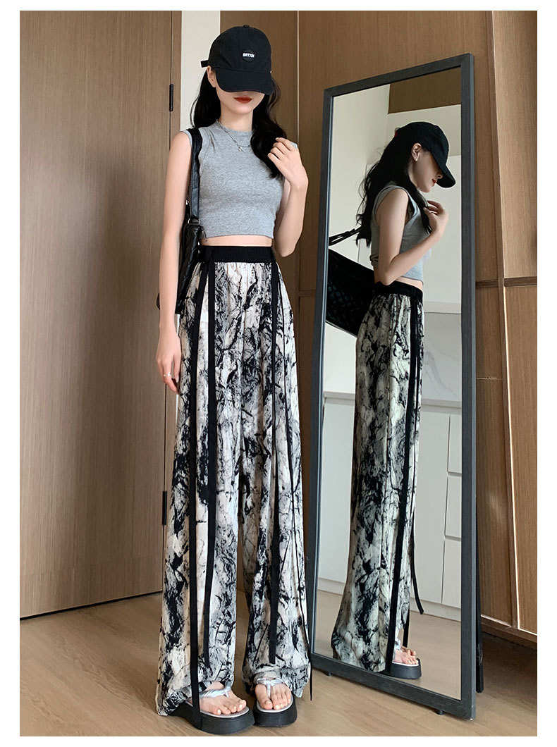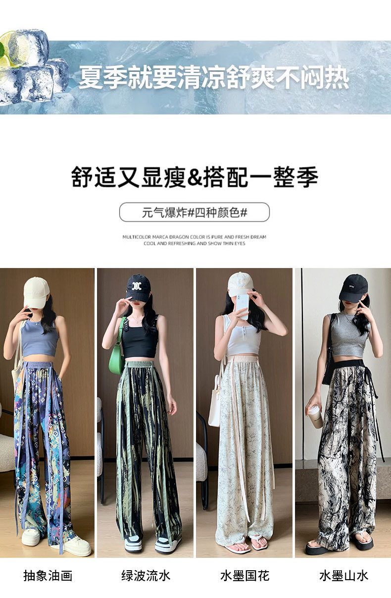 【夏日必备】新款水墨画阔腿裤女,夏季薄款,雪纺高腰休闲直筒裤,垂感扎染设计,冰丝防晒裤子,让你尽情舒适自在,展现你的优雅和气质。