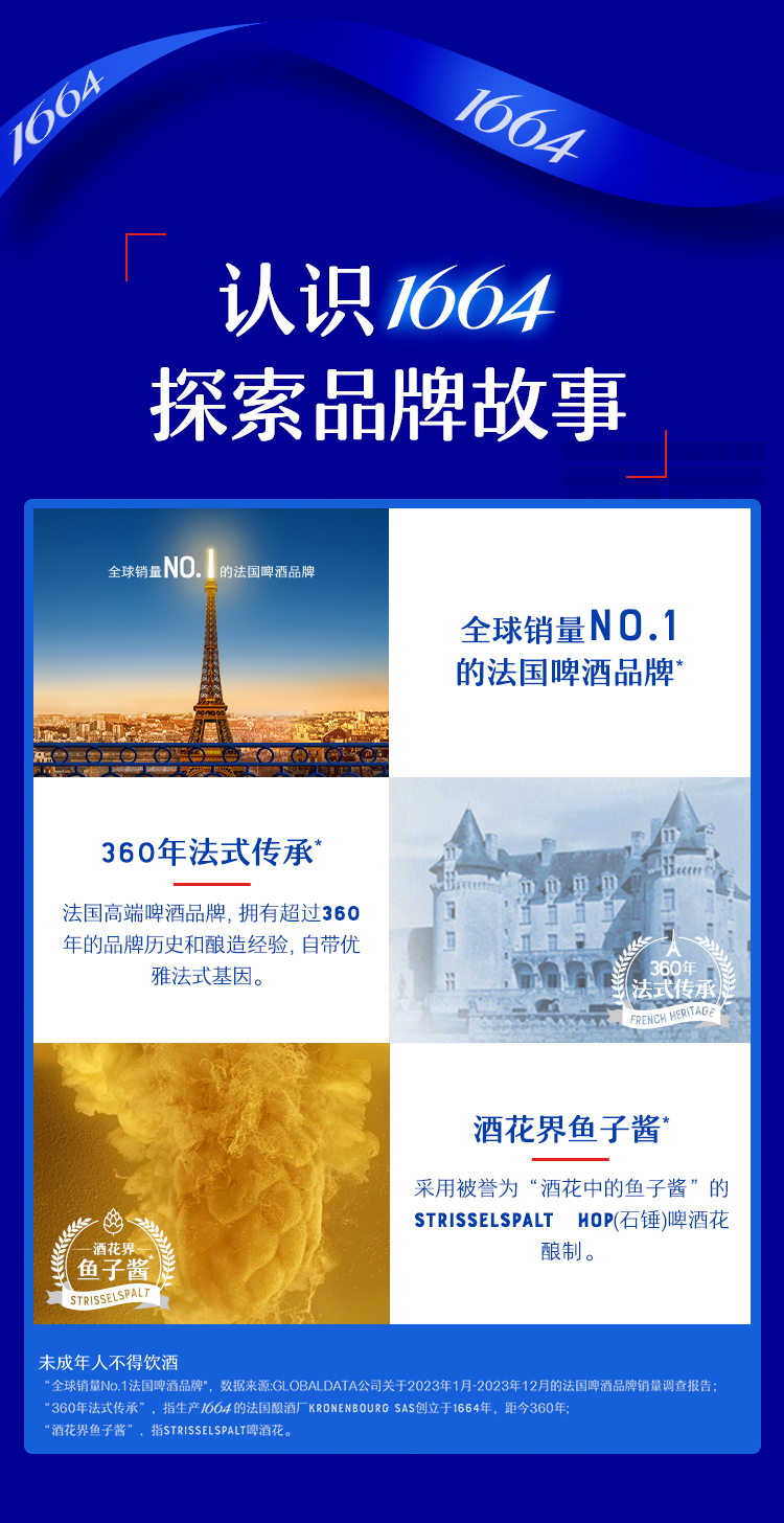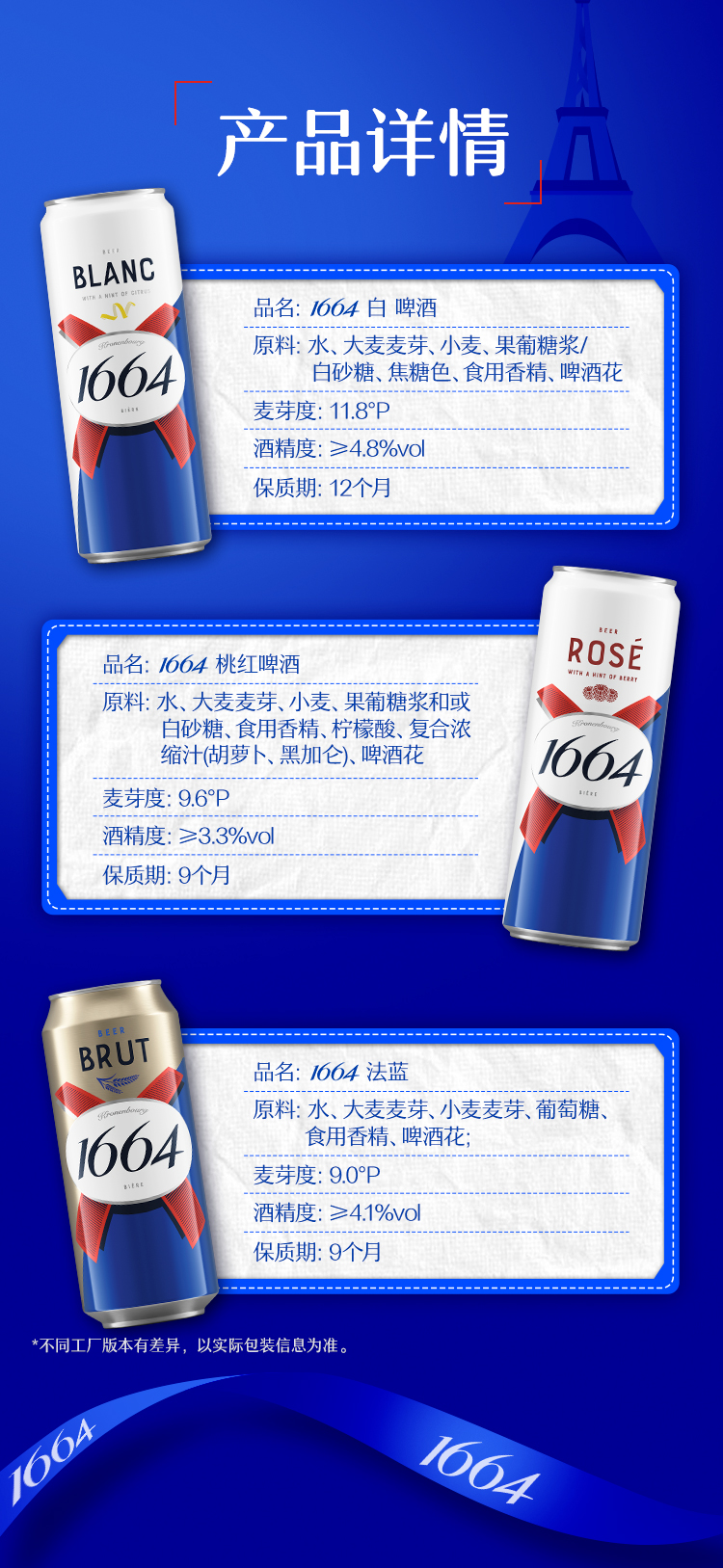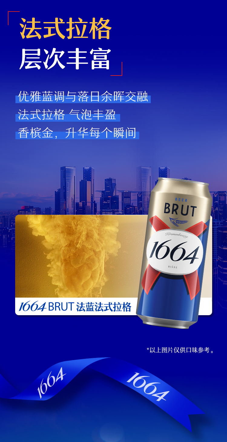 【全新升级罐】法式1664柑橘白/莓果红混合装310ml纤体罐整箱微醺低度小麦啤酒