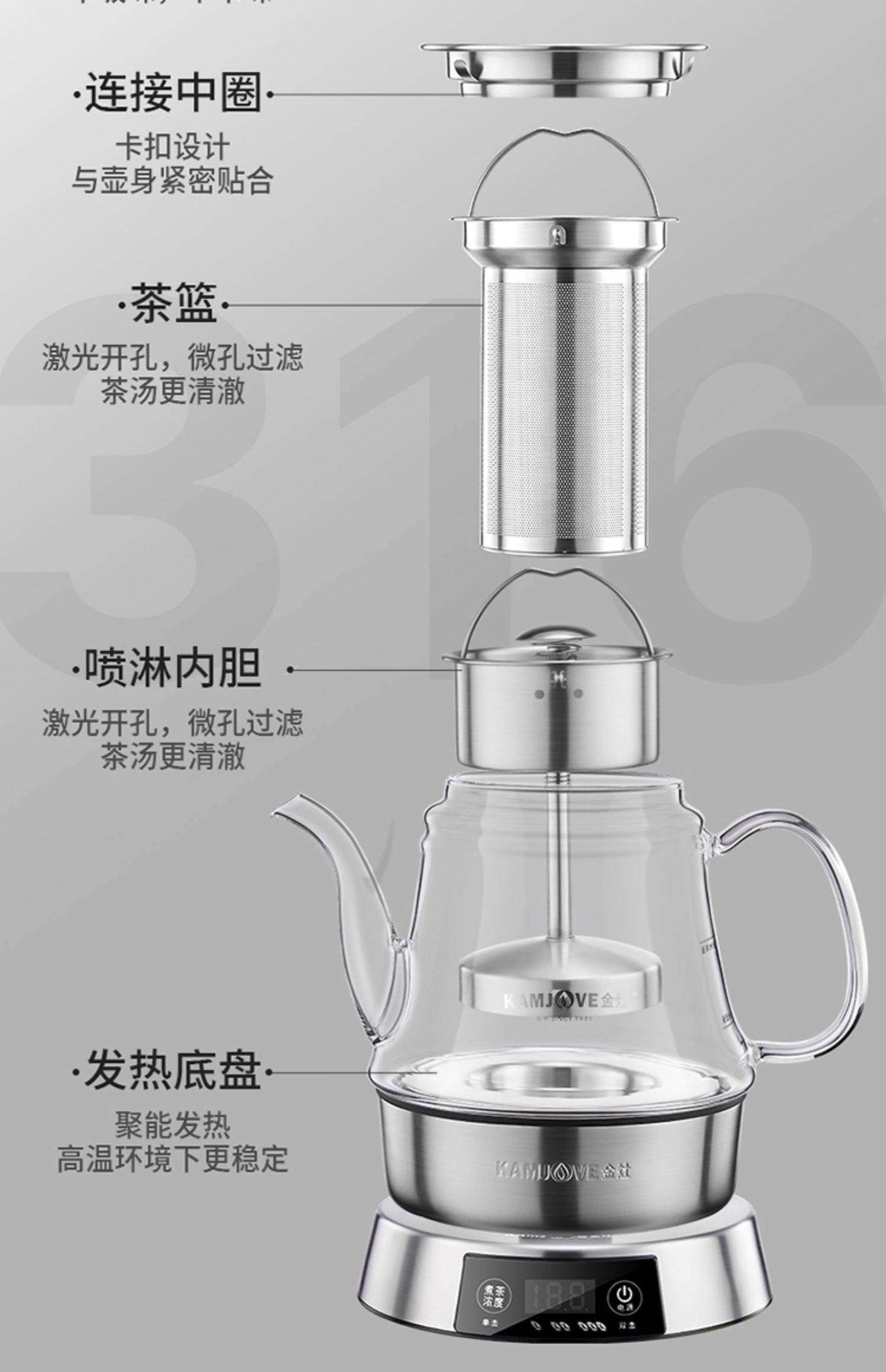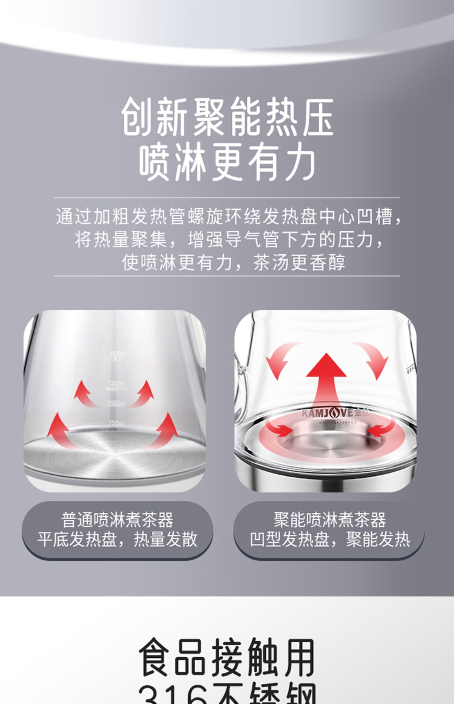 金灶E85煮茶器蒸汽喷淋煮茶壶玻璃电茶壶电热水壶养生壶家用