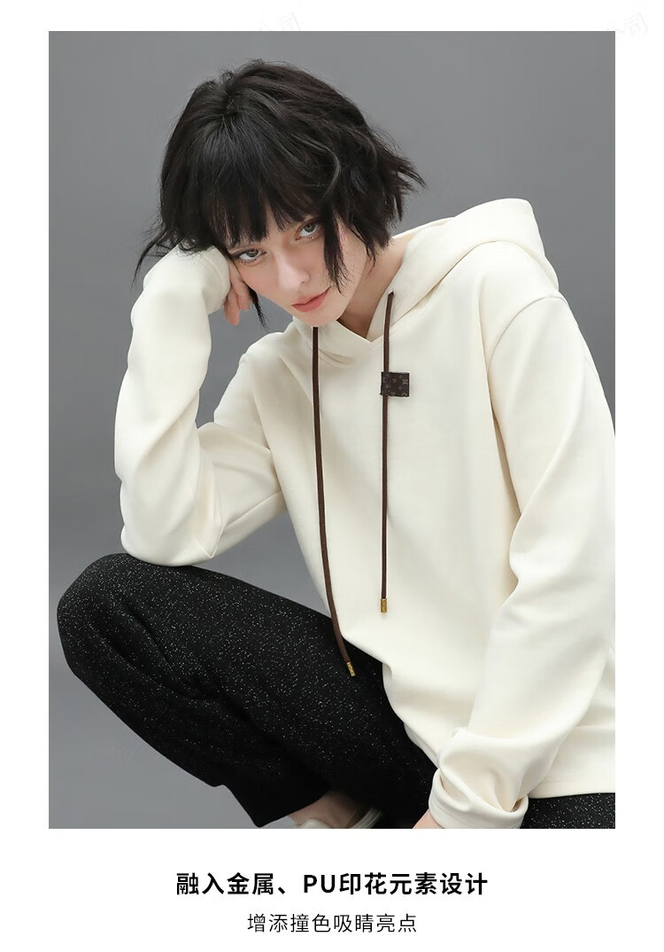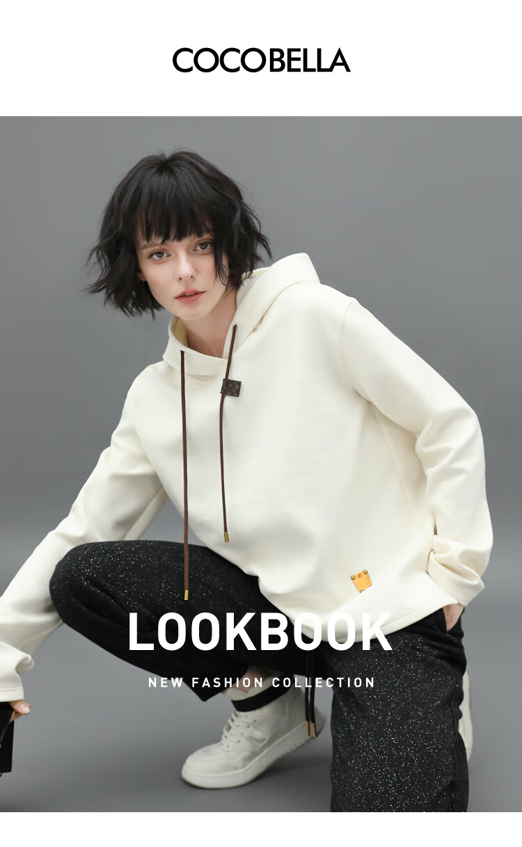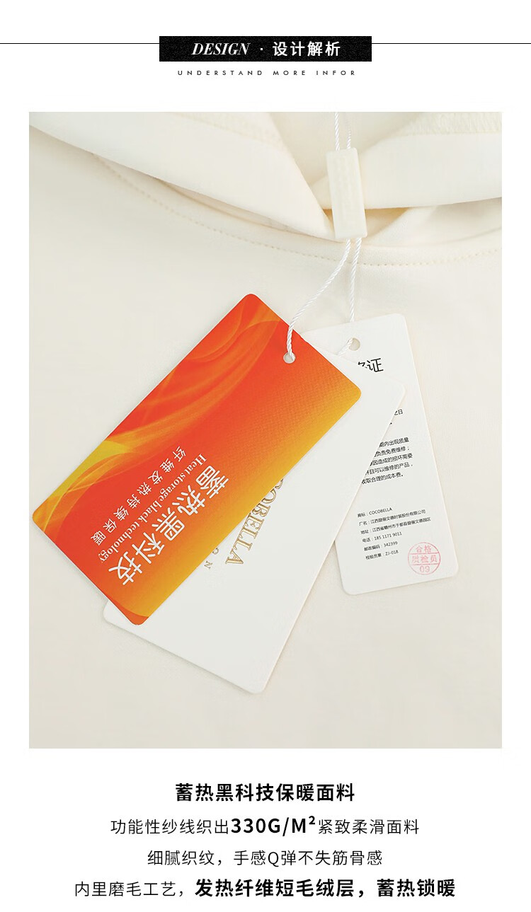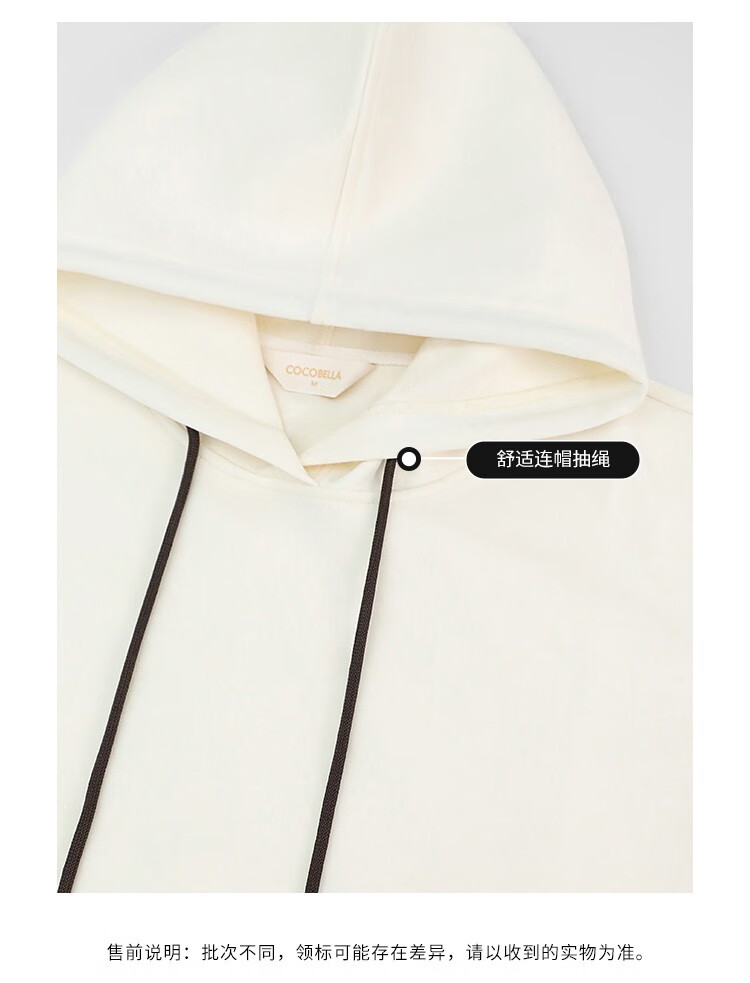 COCOBELLA温暖蓄热连帽卫衣女秋冬自发热休闲白色帽衫SE531