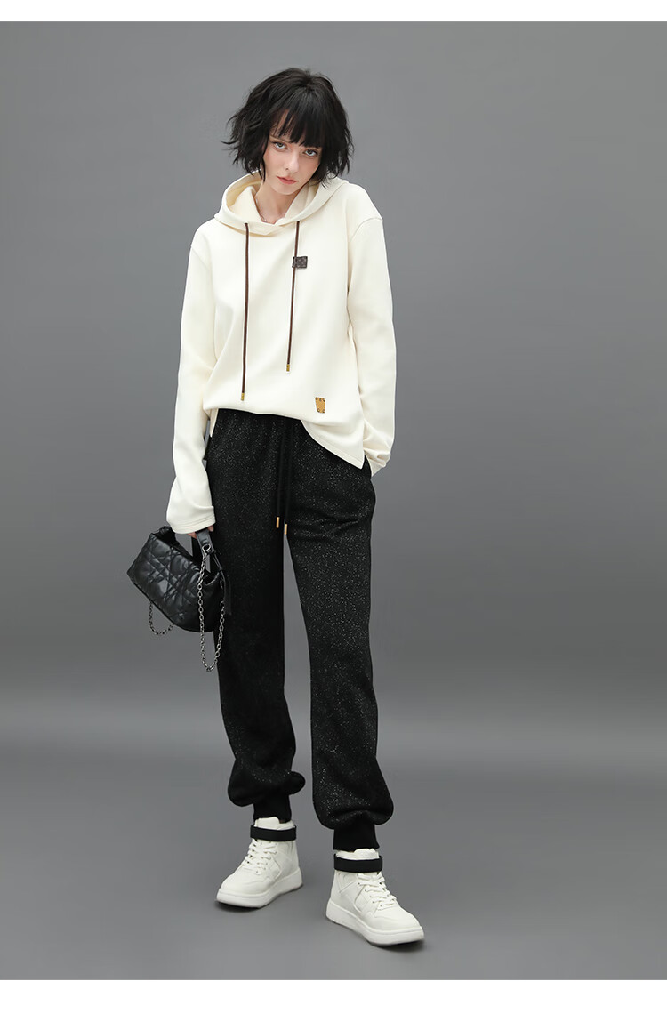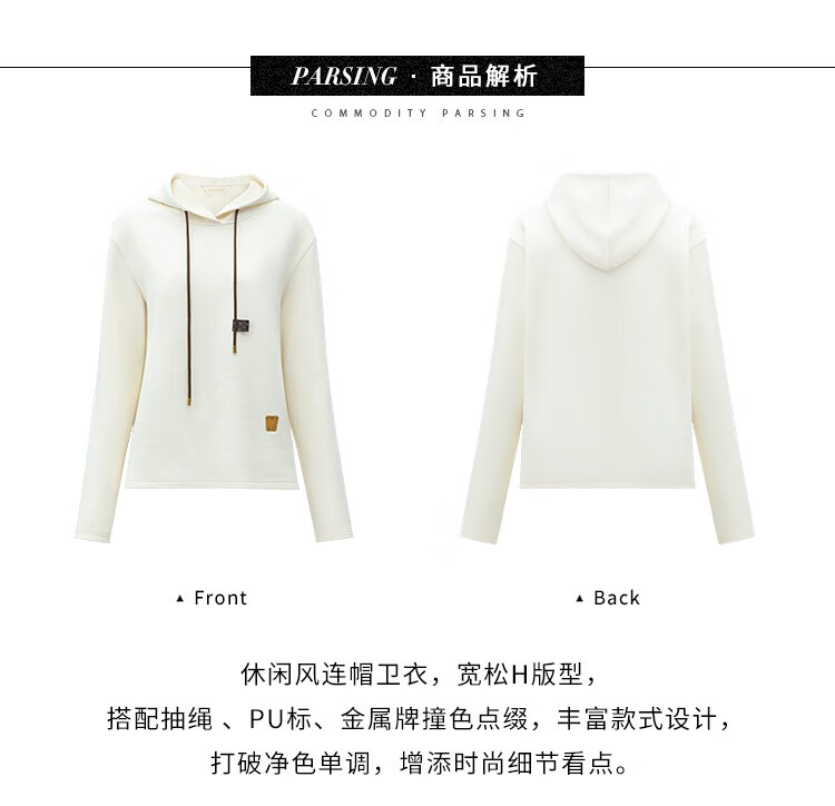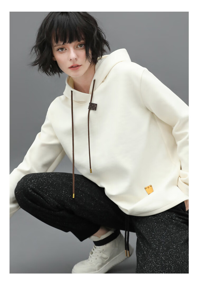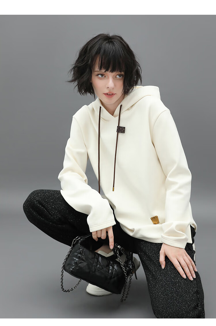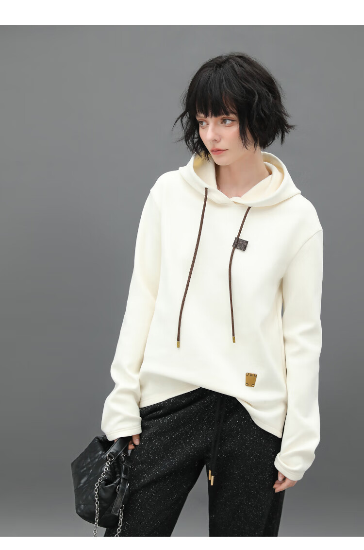 COCOBELLA温暖蓄热连帽卫衣女秋冬自发热休闲白色帽衫SE531