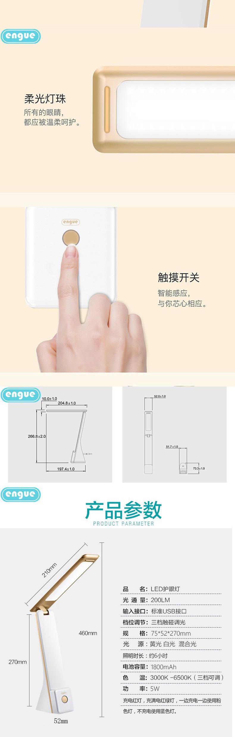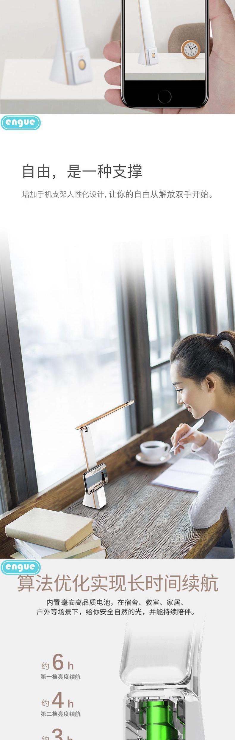 engue恩谷无级调光 手机支架 三色护眼台灯EG-529亮度色温随意调节追剧支架