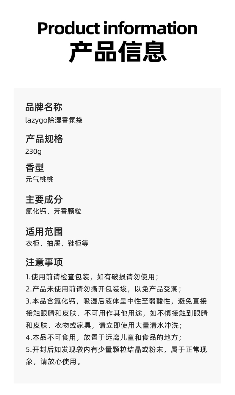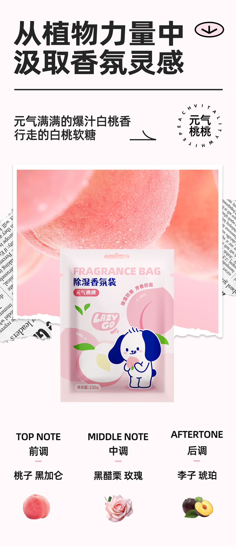 lazygo除湿香氛袋 元气桃桃 230g*3袋装