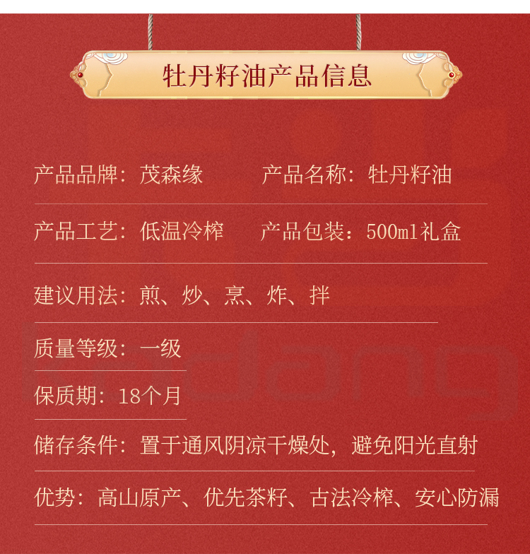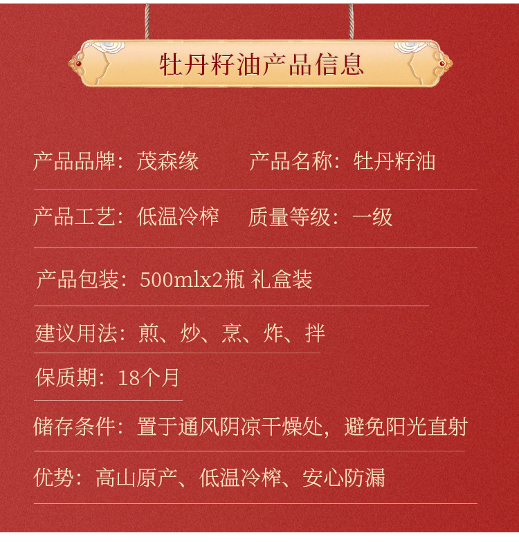 茂森缘 湖北硒都恩施牡丹籽油健康植物食用油护肤油礼盒