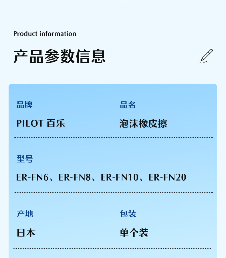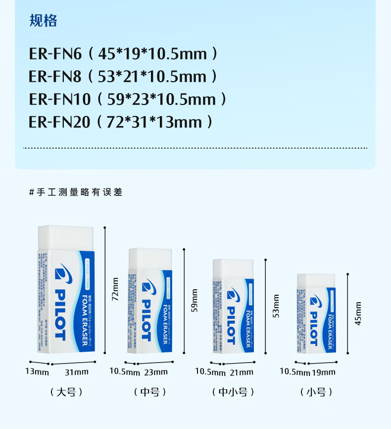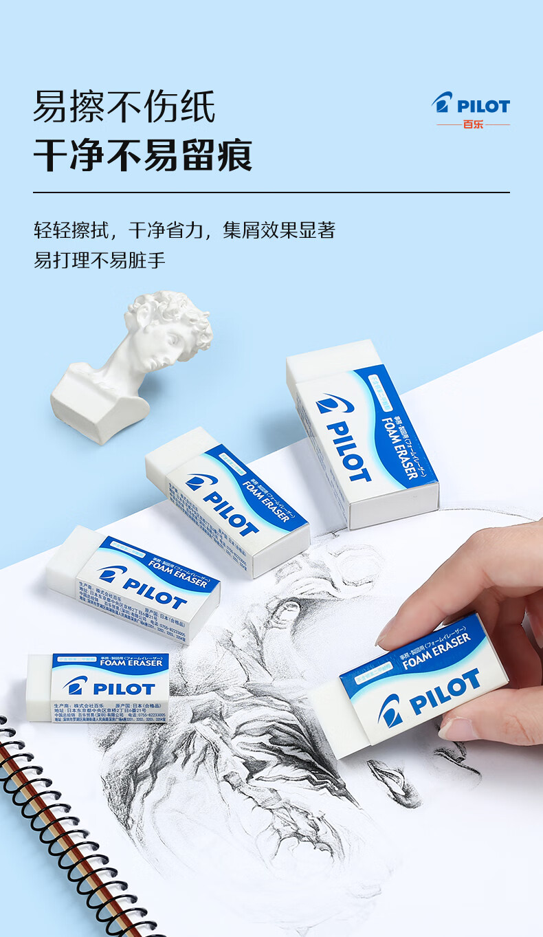 百乐(PILOT)ER-FN 泡沫橡皮擦 干净/学生办公超净橡皮擦 聚屑易擦