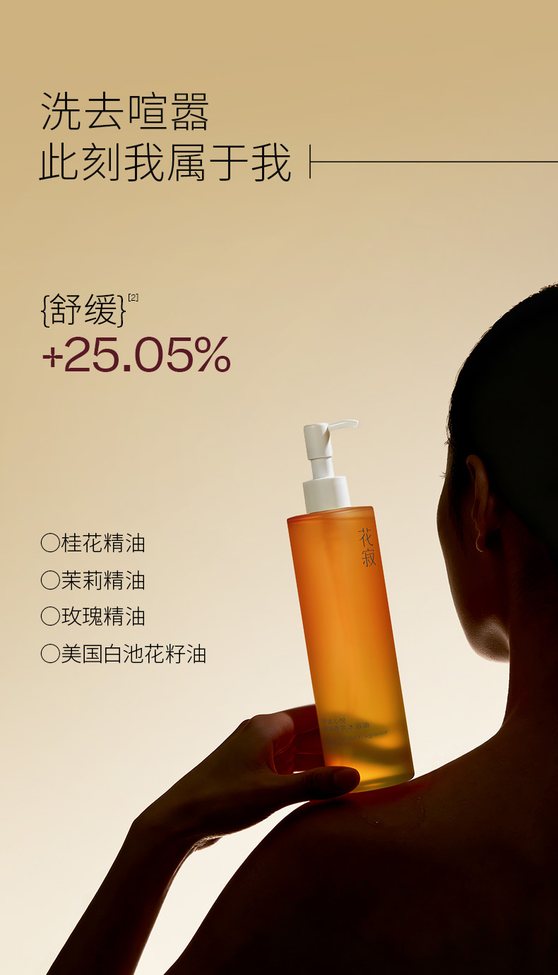 花寂舒缓清洁沐浴油滋润保湿香氛身体沐浴露纯精油【赠送同款沐浴油20ml+沐浴球*1+洁舒缓乳液面膜1片+清洁泥膜6g*2】【福利品】