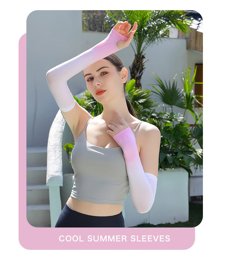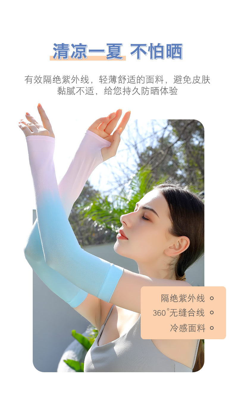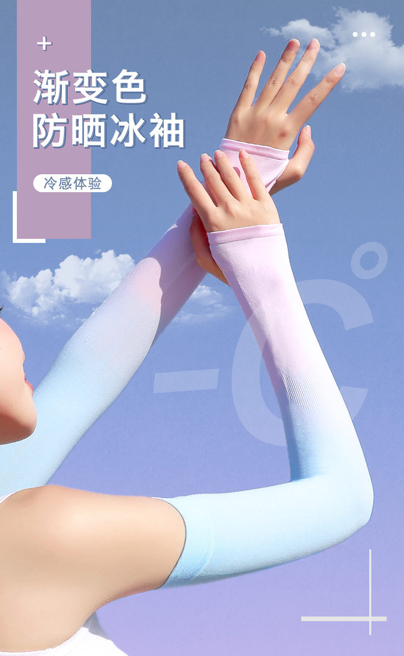 「9.9元包邮!渐变色款」渐变色冰袖防晒女夏季薄款男户外遮阳袖套长冰丝手袖护臂开车配饰