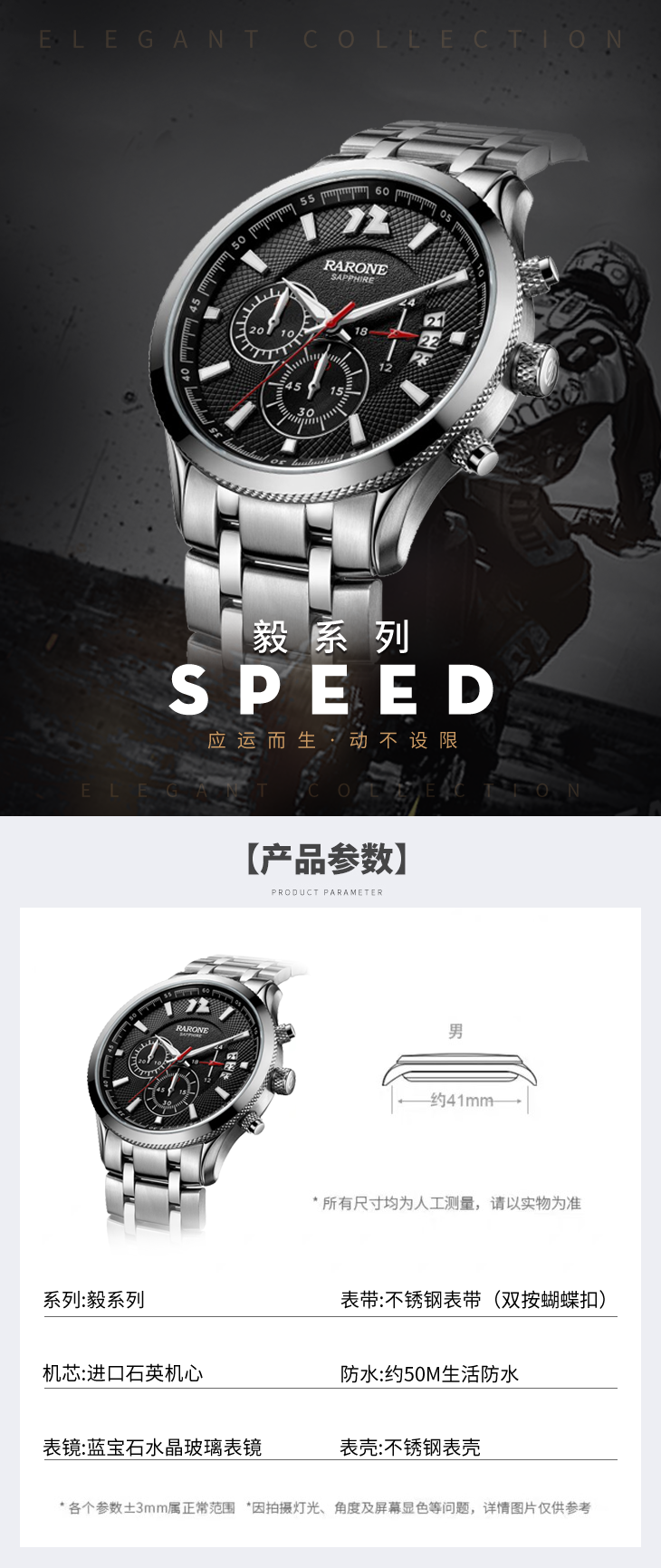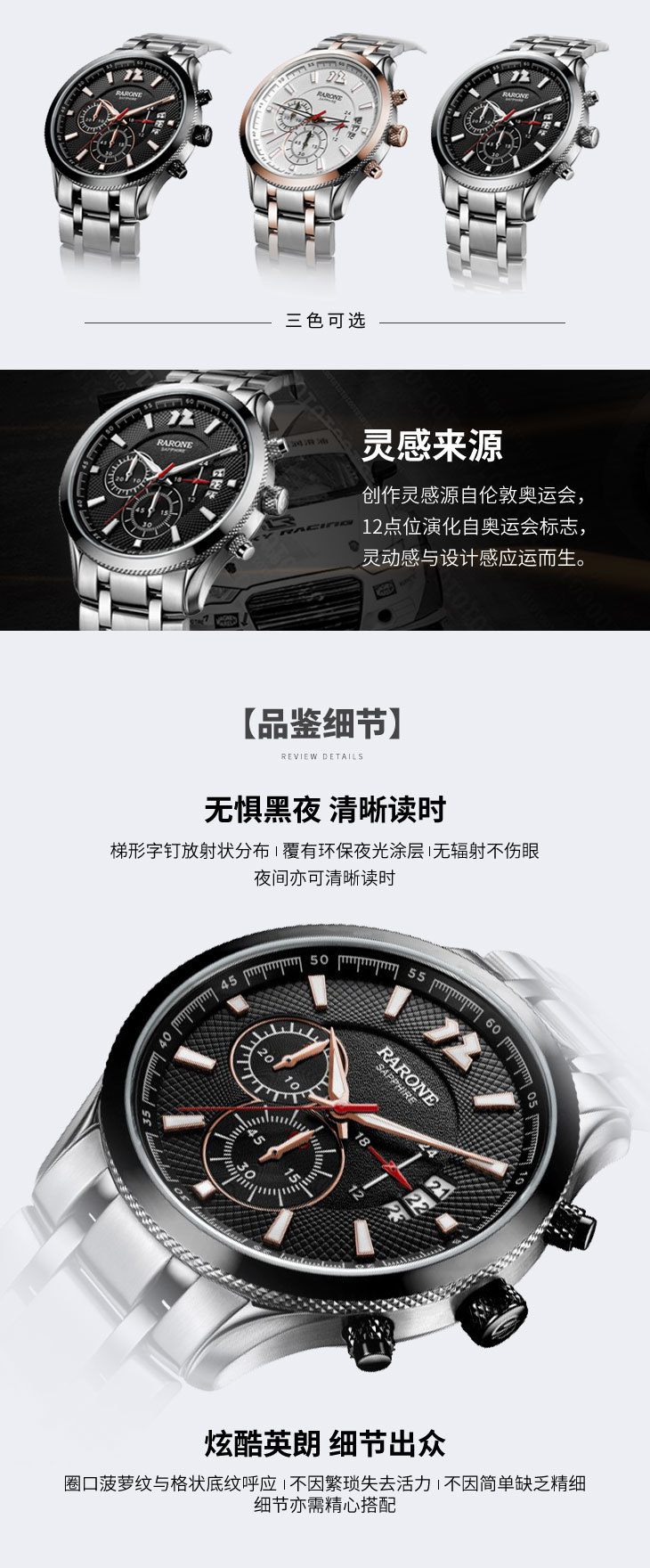 RARONE雷诺表夜色系列石英腕表832021