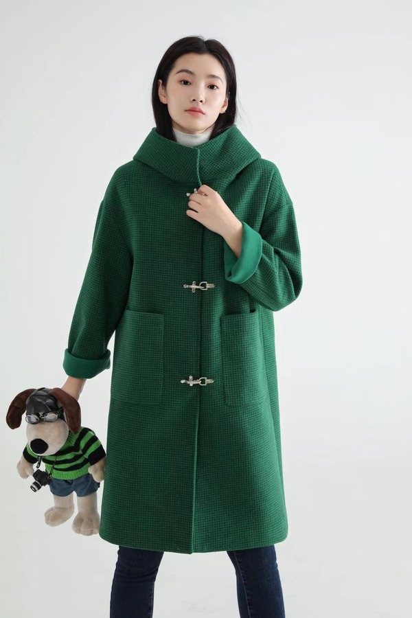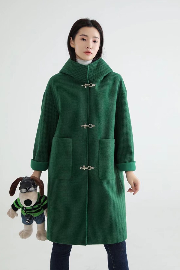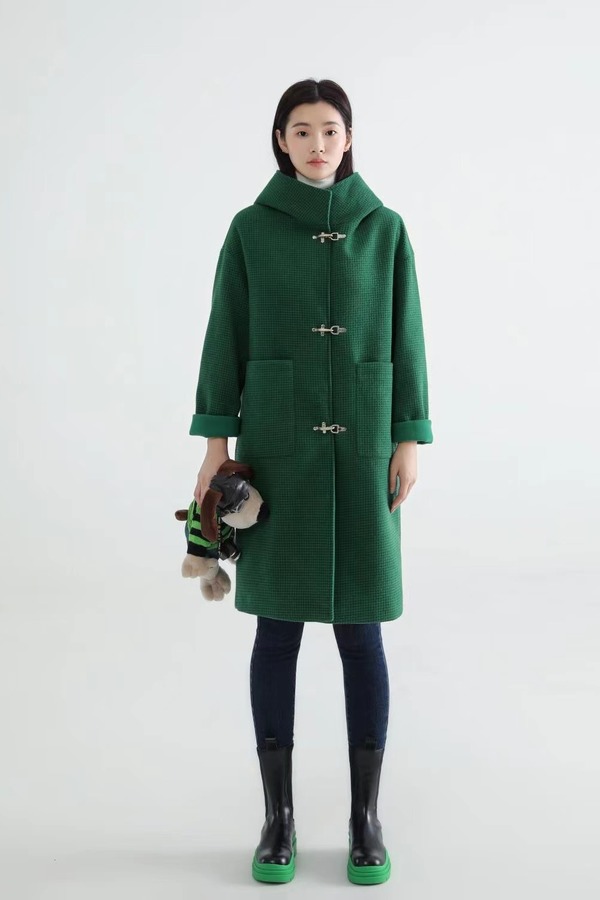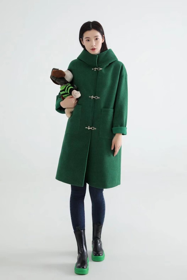 LNNNS 深绿色高领连帽大衣外套(羽绒内胆) 17442