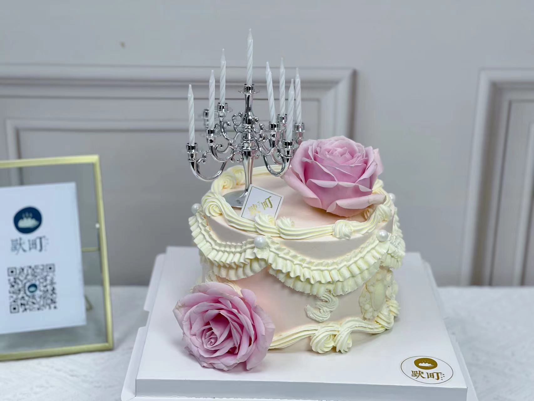烛台裱花粉色玫瑰