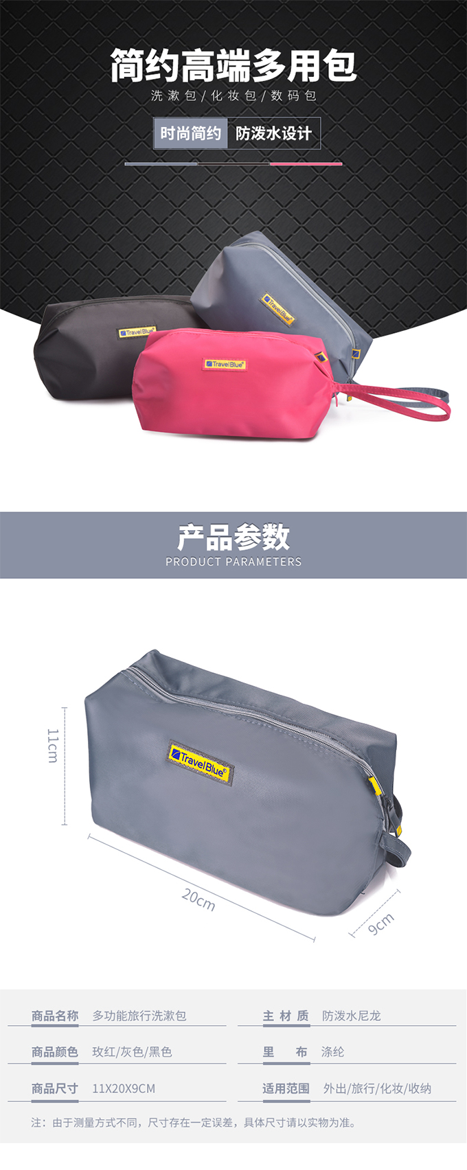 蓝旅化妆/盥洗袋340 洗漱包男士女士防水 旅行出差便携收纳包多功能随身化妆包