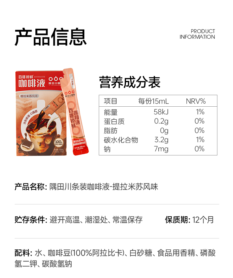 隅田川百搭锁鲜咖啡液提拉米苏风味15ml*10杯