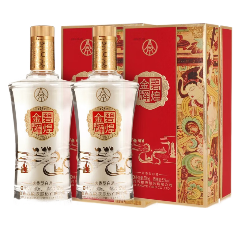 五粮液礼盒装白酒 收藏送礼 52度 500mL 2瓶 金碧辉煌 丝绸款