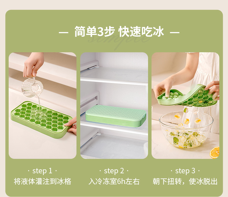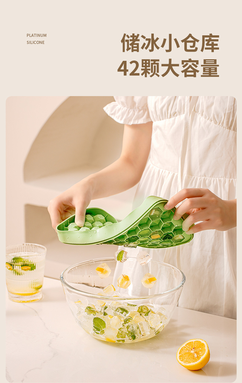 夏日制冰神器 42颗大容量冰盒 按压冰块模具家用冰格制冰盒制作磨具神器储存冻冰块模型冰箱