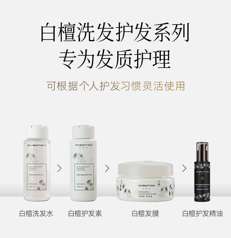 【春日膜Fan生】白檀丰盈蓬蓬润养洗护套组-白檀洗发水500ml+白檀护发素500ml+护发精油55g