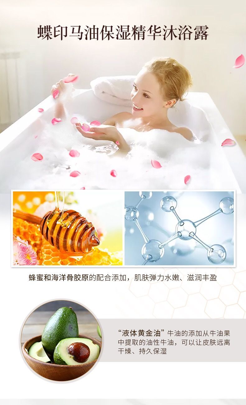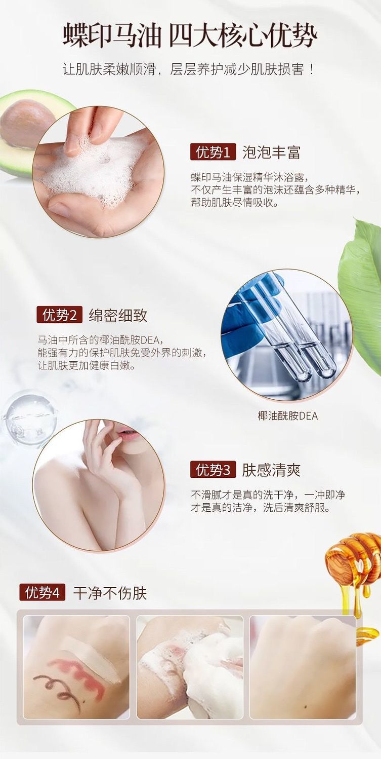 蝶印牌马油保湿精华沐浴露男女沐浴乳液家庭装600ml