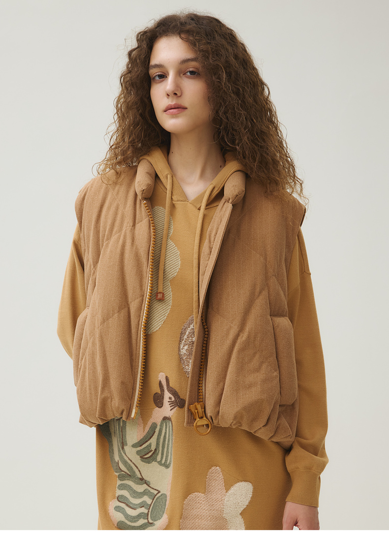 谜底羽绒马甲女2025秋新品微弹软糯苞形下摆鸭绒服百搭253MY1184