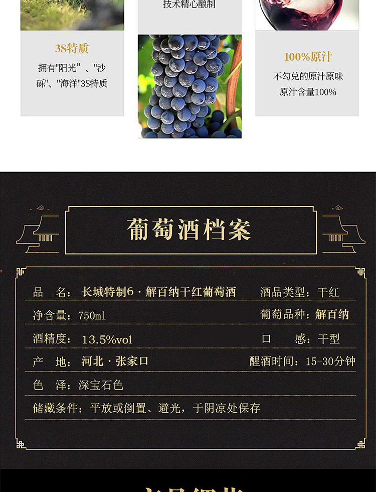 长城特制六年解百纳干红 750ml*1支(盒装 )